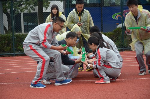 辅导员作为学生思政教育的工作者和学习生活的指引者,面对个性鲜明的大学生群体,引导学生养成良好心理品质的同时,增强个人抗压能力也成为新形势下思想政治教育工作的重中之重。拓展活动共分为“一鼓作气”、“大脚板”、“旋风跑”、“能量运输”和“万众一心”五个项目,活动中合理利用了团队角色,是培养辅导员团队文化,增强辅导员职业认同感的良好契机。为我们的队伍增加了斗志。