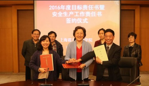 4月11日,我院在体艺楼会议厅举行了2016年度目标责任书签约仪式。上海震旦教育发展基金会理事长张惠莉、上海震旦职业学院董事长张沈、院长陈力华、党委书记黄晞建党委副书记夏臻等党政领导出席了本次签约仪式。张惠莉理事长、陈力华院长、黄晞建书记分别与各二级学院和职能部处室签订目标责任书。人事处长虞蓓蓓主持签约仪式。