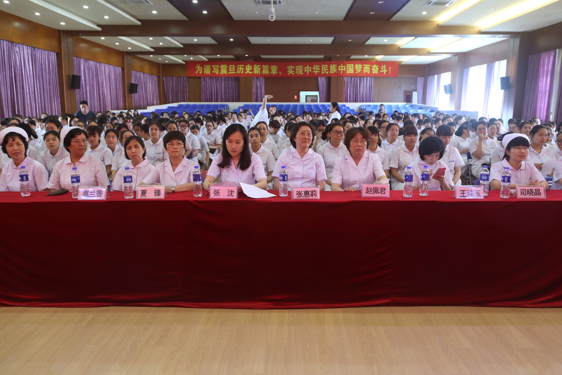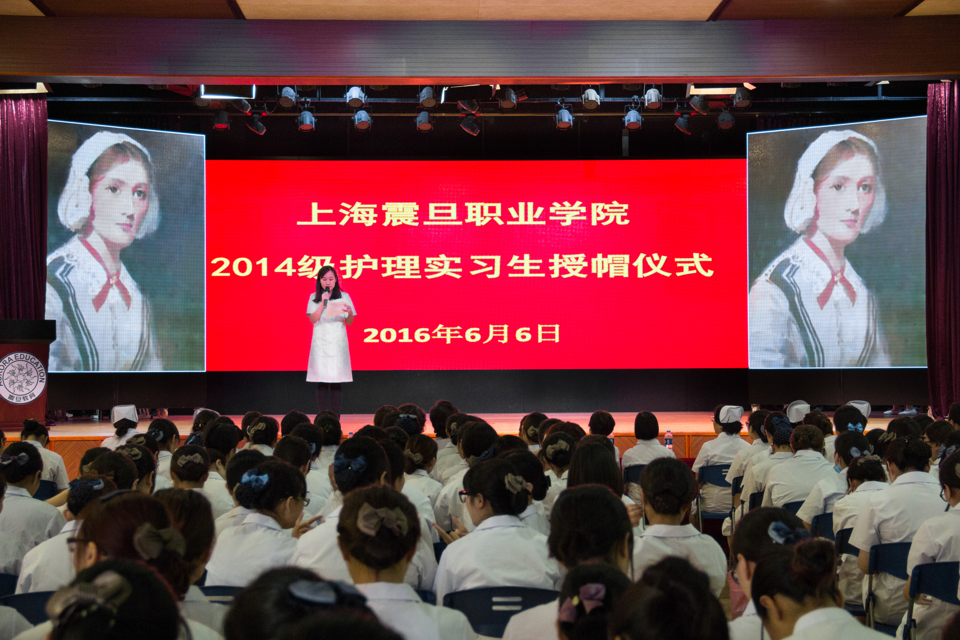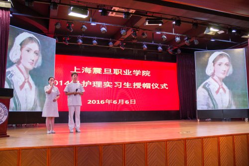 6月6日下午,上海震旦职业学院公共卫生与护理学院2014级护理专业实习护生授帽仪式在学院大礼堂隆重举行。震旦教育发展基金理事长张惠莉、震旦职业学院董事长张沈、震旦职业学院副院长王纯玉、震旦职业学院党委副书记夏臻出席仪式,并应邀与公共卫生与护理学院院长赵佩君、党总支书记扈兰香、副院长司晓晶、护理专业主任吴景芳共同为实习护生授帽,14级护理专业共224名学生参加仪式。