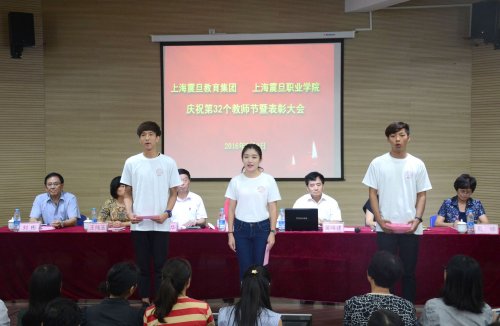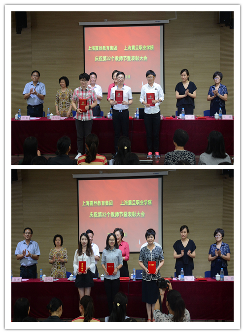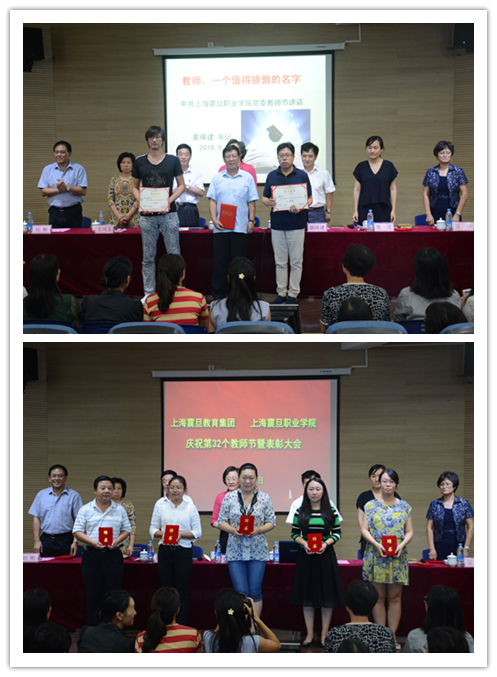 陈力华院长主持会议 2016年9月9日,上海震旦教育集团、上海震旦职业学院隆重召开“庆祝第32个教师节暨表彰大会”。本次大会为视频会议,主会场设在震旦学院,集团其它下属8个院校园为分会场。震旦教育集团管委会主任张惠莉、震旦教育集团董事长张沈;震旦学院院长陈力华、党委书记黄晞建、副书记夏臻、副院长刘彬,震旦教育集团管委会副主任、震旦学院副院长王纯玉等领导同震旦学院全体教职工在主会场参加大会。陈力华院长主持大会。 张惠莉主任向全体教师致节日问候 其次,大会进行各项表彰奖励: ——震旦教育集团管委会副主任王纯玉宣读《上海震旦教育集团关于表彰2015学年“优秀园丁”和“师德标兵”的决定》,并颁发奖励证书; ——震旦教育集团董事长张沈宣读“第二届上海高校青年教师教学竞赛”获奖名单和《关于2015年震旦学院辅导员年度人物表彰决定》,并颁发奖励证书; ——震旦学院副院长刘彬宣读《关于表彰参加2016年全国职业院校技能大赛及上海赛区选拔赛获奖选手、指导教师的决定》及第五届科技节学院学生技能竞赛组织奖的获奖学院名单,并颁发奖励证书。 大会同时由震旦学院党委副书记夏臻宣读《关于学院党委职能部门负责人任职通知》和《关于学院各党总支、直属党支部书记任职通知》,并颁发任职聘书。 再次,大会进行学生代表献词和教师代表发言。在学生代表“师从震旦,感恩在心”的献词中,震旦的学生用感恩的心赞美震旦的教师:您的三尺讲台,耕耘着您对我们的希望。您对我们的爱,是无私的爱,是不求回报的爱。我们一定在您的教诲下,学习知识、更要学习做人。老师,有您为伴,我们前进有方向;集团2015学年“优秀园丁”代表王斌和学院2015辅导员年度人物孙立岩在发言中,以他们的切身体会回忆了自己和学生共同成长的历程,并总结了自己从事教书育人工作的收获和体会,他们决心要做一个让学生满意的有理想、有道德、有学识、有爱心的人民教师,切实为震旦的发展贡献自己的微薄之力。 最后,震旦学院党委书记黄晞建做了《教师,一个值得骄傲的名字》的专题讲座。黄晞建书记的开场白,就是非常感慨地回忆起自己的老师,他动情地说:自己的成长,特别是自己在成长过程中所取得的每一个成绩,并能成为上海“名师”,确实离不开老师的教育和培养,老师对自己的教诲是终身难忘的。黄晞建书记指出:教师是社会公认的高尚职业,特别是随着社会的发展,教师的地位越来越高。教师节的由来,不仅仅是中国,从世界到各发达国家乃至现在的国际网络,都有象征各自意义的教师节。因此作为我们教师,一定要有幸福感和责任感。黄晞建书记强调:我们一定要认真学习习近平总书记对教师提出四点要求的讲话精神,一要做有理想信念的好老师,树立坚强的政治信念,忠于党和人民的教育事业;二要做有道德情操的好老师,教师要以自己的人格力量和人格魅力来塑造学生,切实做“以德施教”、“以德立身”的楷模;三要做具有扎实学识的好老师,教师一定要刻苦钻研、严谨学习,不断充实拓展、不断提高自己,要“活到老、学到老”;四要做有仁爱之心的好老师,只有爱学生的人,才可以教育学生。要尊重学生、热爱学生,只有教师的仁爱,才能使学生充满自信、振奋精神。 (宣传部) 震旦教育集团、震旦学院隆重召开庆祝教师节暨表彰大会