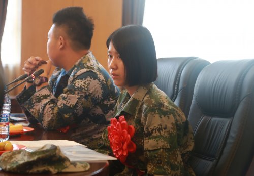 公共卫生与护理学院张海燕同学代表全体新兵发言,她感谢母校的精心培养,决心今后她不管走到哪里,都会谨记母校的教诲——脚踏实地、自强不息,要以自己的实际行动报效祖国,为震旦添彩,为亲人争光。