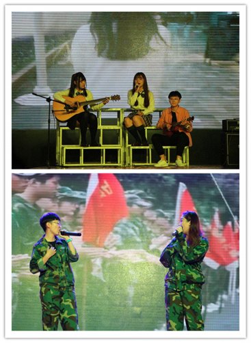 红毯仪式结束后,幕布缓缓拉开,炫目的灯光劲爆的音乐瞬间吸引了同学们的眼球,热辣的开场舞在一片薄薄的淡雾中呈现而出。动感十足的街舞表演带动了现场气氛,热舞之后的美声合唱则让全场瞬间安静了下来,歌者不俗的唱功和真情的流露打动了在场所有人。随后的独唱与独舞串烧则将音乐与舞蹈的艺术形式完美体现出来,将我校学生的风采展现地淋漓尽致。紧接着傣族舞《画伞幽兰》在薄雾中登场,与热舞不同,傣族舞充分展现了女子的柔美。随后的独唱与独舞串烧则将音乐与舞蹈的艺术形式完美体现出来,将我校学生的风采展现地淋漓尽致。吉他弹唱《Youngforyou》,精心制做的MV,默契的合作,则为同学们带来一阵别样的清新风。小品节目《军训那点事》通过略显夸张的手法,以诙谐幽默的方式呈献出了新生军训时的刻苦训练经历,《军训歌》更是勾起了对军训时光难以忘怀的回忆。