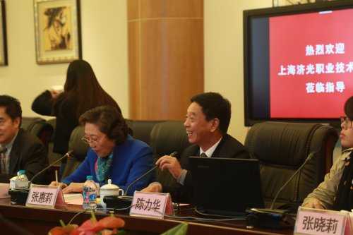 11月10日下午,上海济光职业技术学院院长李永盛、党委书记祁学银带领院办、党办、人事、教务、学生、财务处等部门负责人访问我院,受到上海震旦教育集团理事长、上海震旦职业学院创办人张惠莉,上海震旦职业学院院长陈力华,上海震旦职业学院党委书记黄晞建以及相关部、处室负责人的热情接待。 双方在震旦学院体艺楼国际会议中心进行了友好访谈。会议由上海震旦职业学院党委书记黄晞建主持,上海震旦职业学院创办人张惠莉首先做了欢迎词,对上海济光职业技术学院党政领导送宝上门表示热烈欢迎,希望两校之间加强合作与沟通。 上海震旦职业学院院长陈力华向客人做了《上海震旦职业学院教育事业发展第十三个五年规划纲要》的介绍,震旦学院的十三五规划经过集体讨论,几番修改,前后耗时1年多时间才定稿,对“十三五”期间震旦学院教育战略提出了总体发展目标并已开始实施。 上海济光职业技术学院院长李永盛在听取陈院长的报告后,首先赞扬震旦学院十三五规划立意高,认为济光学院总体情况和震旦学院类似,希望双方能进一步探讨,共谋发展。随后,李院长也介绍了济光学院的概况和当下的重点工作。 我院黄晞建书记强调两校同处一个地区,是兄弟单位,在目前大形势下双方合作紧迫性彰显,既然明确了“十三五”目标就要努力达成。最后,张惠莉理事长表达了震旦学院未来一定要做成以高职为主的本科教育的决心,要么拿地要么和别的高校合作,两条路必选其一。 会后,在学院领导和相关部门负责人陪同下,李永盛院长一行参观了我院实训室和校园,对口部门负责人就各自学院业务进行了深入探讨与交流。 (撰稿 院办)