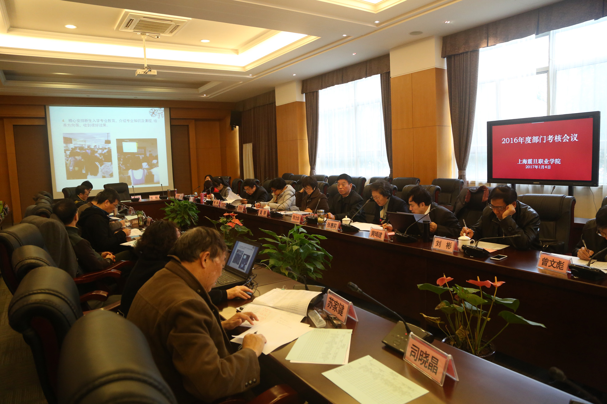 震旦学院举行2016年度部门考核会议      2017年1月4日,震旦学院举行2016年度部门考核会议。震旦教育发展基金会理事长张惠莉、震旦学院院长陈力华、学院党委书记黄晞建、副书记夏臻、学院副院长王纯玉、刘彬同学院全体中层干部参加会议。陈力华院长主持了上午二级分院的考核会议;黄晞建书记主持了下午管理部门的考核会议。        陈院长在考核会议前讲解了本次考核的打分方法,他要求与会人员参照年初学院与各部门签订的《目标责任书》上关键指标的数据,以及各部门的工作汇报进行打分。本次考评打分注重公平、公正和科学的原则,其中院领导打分占总分的50%;二级学院/职能处室在本学院/职能处室的范围打分占总分的20%;二级学院给职能处室打分或职能处室给二级学院打分的分数占总分的30%。              各部门在对2016年度的工作汇报中,普遍制作了内容丰富、形式多样、图文并茂的PPT,做到了精练易懂、一目了然,便于与会人员了解和掌握各部门的工作情况。同时,各部门的工作汇报都能严格按照学院对本部门要求的工作重点和关键数据,充分引用数据和事例来说明全年工作的情况。各部门的工作汇报既有对本部门2016年度的工作总结,又提出了本部门2017年的工作设想和计划,切实达到了认真总结经验教训,推动和促进新一年工作的年终考核目的。 陈院长和黄书记分别在上午二级分院考核会议和下午管理部门考核会议结束时讲话,两位领导充分肯定学院各部门在2016年度工作中取得的成绩,由于各部门及全体教职工的辛勤努力,促进了学院教育教学的改革发展,当年学院又召开教学和学生工作会议,使学院在十三五开局中形势喜人。他们希望各部门在新的一年中,各项工作更扎实,并在年底考核中材料更饱满,PPT做的更漂亮。    在全天考核会议结束后,张理事长做重要讲话。她首先感谢学院各部门和全体教职工在2016年度为震旦学院所付出的辛勤劳动,震旦学院乃至震旦教育集团至所以能得以健康发展,都是大家的共同努力和默默奉献而取得的。她殷切希望学院各部门和全体教职工在新的一年中,要认真学习贯彻党的十八大、十八届六中全会和全国高校思想政治工作会议精神,不忘初心、继续努力、再创佳绩!