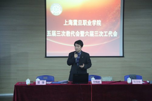 2017年1月9日,上海震旦职业学院召开五届三次教代会暨六届三次工代会。震旦教育发展基金会理事长张惠莉、震旦教育集团董事长张沈;震旦学院党委书记黄晞建、院长陈力华,党委副书记、工会主席夏臻,副院长刘彬、王纯玉等院领导出席会议,本次会议正式代表65名,列席代表29名。