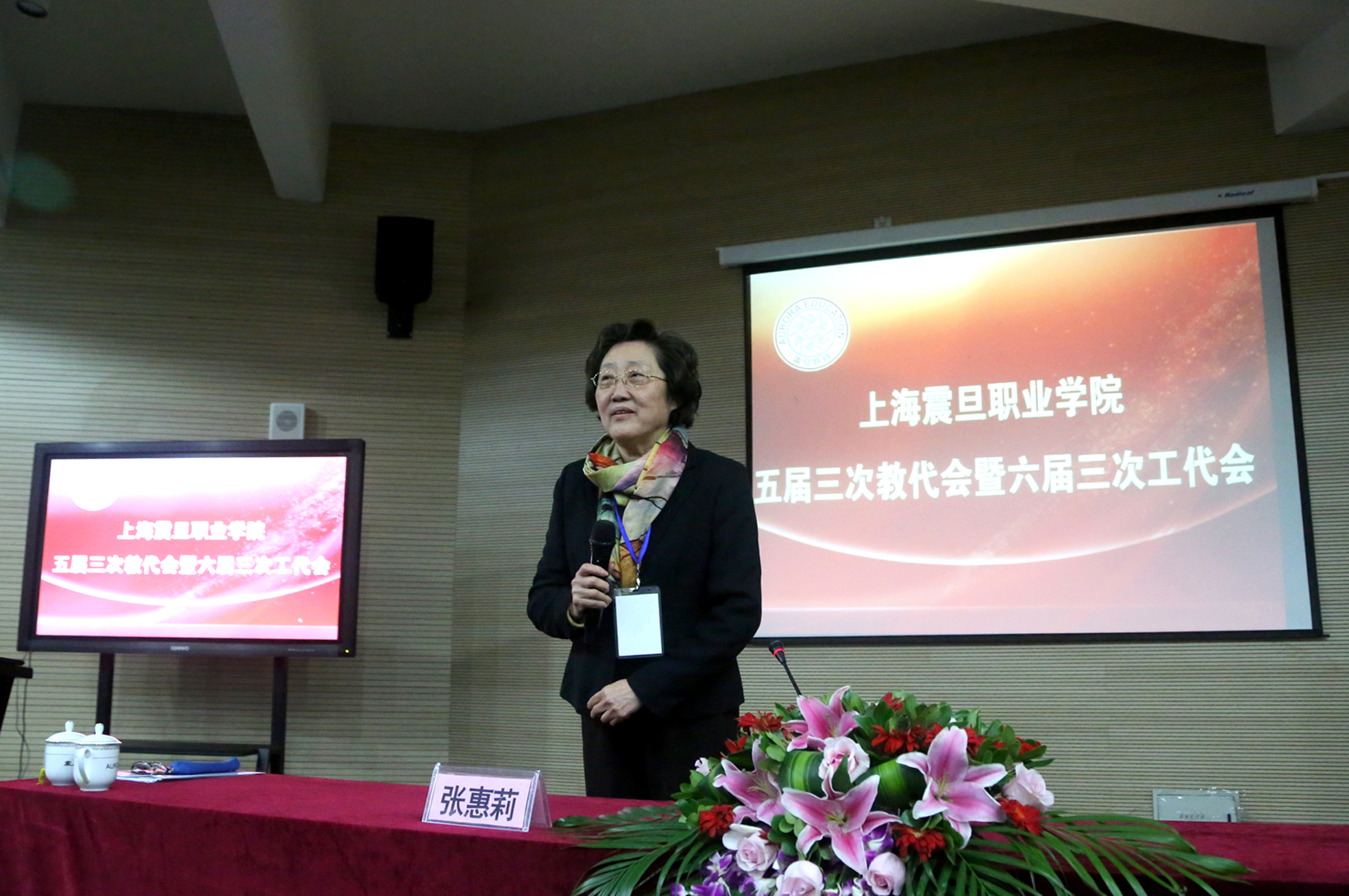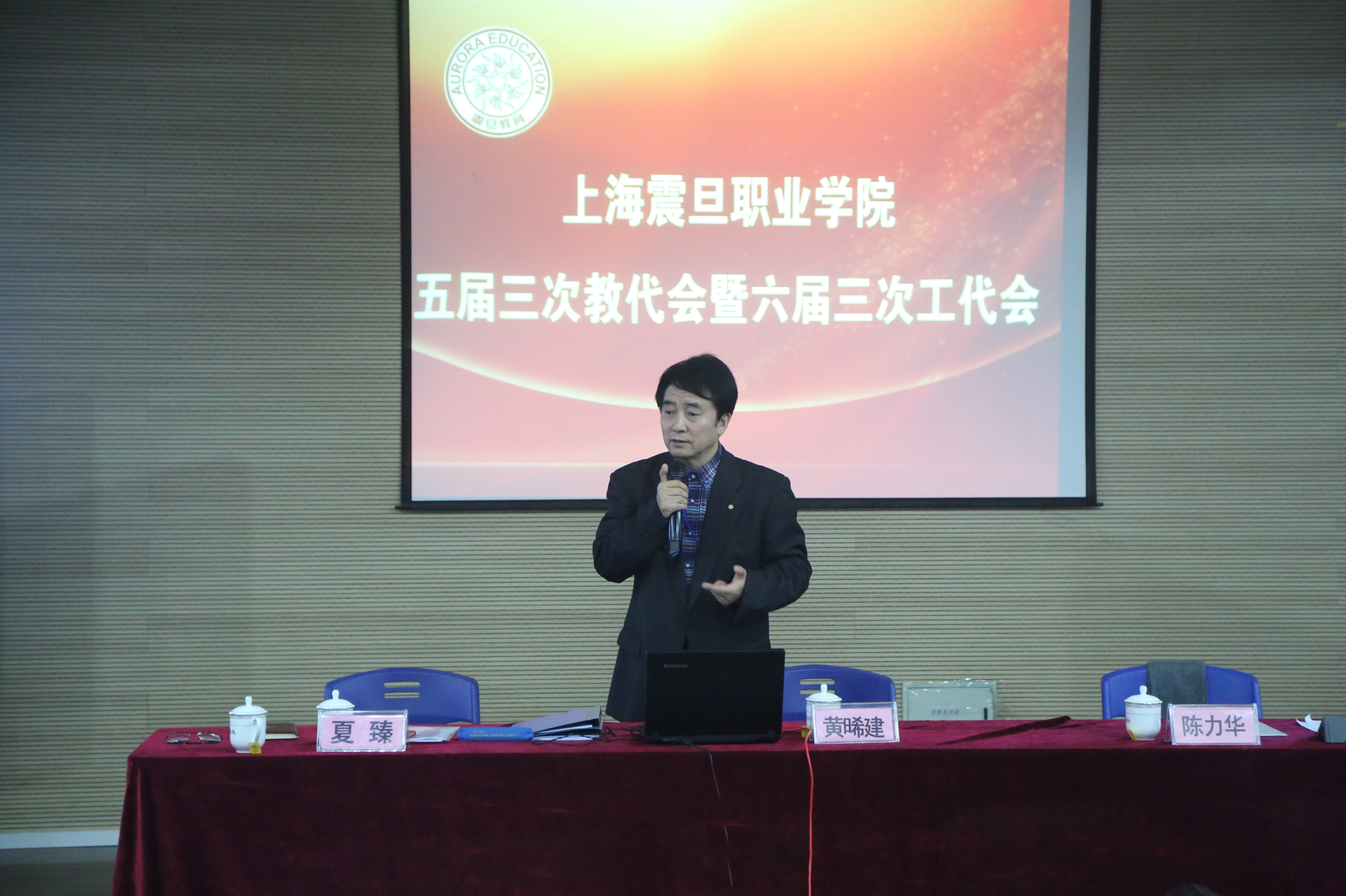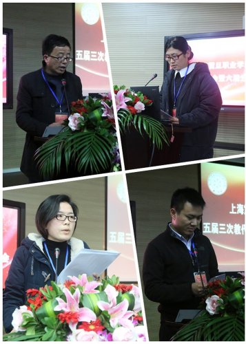 学院召开五届三次教代会暨六届三次工代会        2017年1月9日,上海震旦职业学院召开五届三次教代会暨六届三次工代会。震旦教育发展基金会理事长张惠莉、震旦教育集团董事长张沈;震旦学院党委书记黄晞建、院长陈力华,党委副书记、工会主席夏臻,副院长刘彬、王纯玉等院领导出席会议,本次会议正式代表65名,列席代表29名。           会议听取、讨论并审议通过了院长陈力华代表学院行政所做的《2016年度行政工作报告》和党委副书记、工会主席夏臻所做的《2016年度工会工作报告》;审议通过了学院工会经审委《关于2016年度工会经费使用情况报告》和《》2016年度集体合同》相关内容。会议还听取了本次代表大会代表提案情况的处理报告;听取了黄晞建书记的《党委工作报告》,并对院党委的工作述职进行了民主测评。     陈院长在工作报告中指出:一年来,学院在市教委、市民办高校党工委、董事会和院党政的领导下,坚持“综合素养、创造能力、高尚人格”培养目标和“以人为本,育人育能,德育为先,教会做人”办学理念,将思政工作贯穿教育教学全过程,全面提高教育教学质量,推动体制机制创新,深化校企合作、工学结合,取得显著成绩;在新的一年,学院将深入贯彻党的十八大和全国高校思想政治工作会议精神,聚焦重点难点,着力内涵建设和师资队伍建设,推动新一轮的教育改革与发展,确保2017年各项工作目标有效落实。        夏主席的工会工作报告客观实在,总结了2016年工会围绕学院的中心工作,团结带领广大教职工,为构建安全文明和谐校园、提高教育教学质量、服务全体师生员工、丰富校园文化生活、促进教育教学改革等方面所做的工作,并将在2017年继续主动对接、积极作为,为完成学院2017年各项工作做出应有的努力。         学院工会主席夏臻和董事长张沈在会上签订2017年集体合同。        张理事长在会议结束时作重要讲话,她指出:办好学校,很重要的是要以法治校和民主管理,民主管理的体现就是要开好学院的教代会和工代会,学院的教代会和工代会要真正发挥作用。希望全体教职工能爱校如家,团结一心,在新一年的工作中“做大梦、迈大步、成大事、结大果”,齐心协力把学校建设成团结、温暖、和谐、幸福的小康之家!  (撰稿 沈乐华 黄敏)