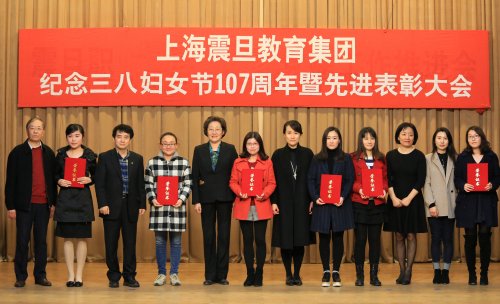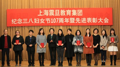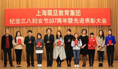 上海震旦教育集团纪念三八妇女节107周年暨先进表彰大会于3月10日下午在震旦外国语中学礼堂举行。张沈董事长宣读2016年度三八评选获得先进个人和集体的表彰名单。我院公共卫生与护理学院、学工部获得“三八红旗集体”荣誉称号,叶素梅、邱丽娜等13人获得“三八红旗手”称号,陈洁家庭获评“五好文明家庭”称号。 上海震旦职业学院学工部部长毛燕静代表三八红旗集体发言。 党委书记黄晞建在表彰会上祝全体女同胞节日快乐!希望女老师们能够平衡好生活和工作、家务与休闲的关系,劳逸结合、张弛有度,以更好的状态投入到工作中去。 上海震旦职业学院院长陈力华虽因会议冲突未能到现场,也祝福全体女同胞节日快乐!健康美丽!阖家幸福! 在表彰会结束后,风采展示环节开始,各个院、校、园、中心的老师们百变造型、各展风采,在节日欢乐的气氛中展现了别样风情。