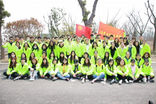 志愿者们在校团委书记曹晓莉老师的带领下,来到闻道园开始了本次的植树活动。随着温度的升高,晶莹的汗水渐渐爬上了志愿者的额头,但这丝毫不减大家劳动的热情。大家分工协作,手握工具,抗苗散苗,挥锹铲土,扶苗平土,每个环节都踏实认真,忙的热火朝天。经过一上午紧张的劳动,5000棵树苗整整齐齐地在闻道园“安家落户”,为河畔添上一片新绿,使宝山多一抹色彩。