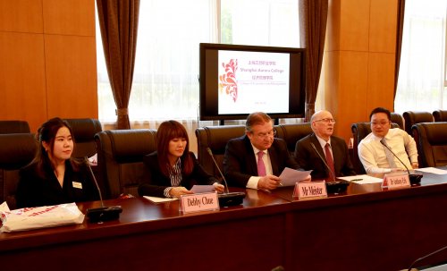 会议在张沈董事长的主持下开始,首先由胡静怡主任向Meister先生一行详细介绍了经济管理学院的基本情况,以及相关专业的人才培养目标、专业特色、课程设置等情况,之后双方就共同培养和海外深造的合作方式及途径进行了深入的探讨。