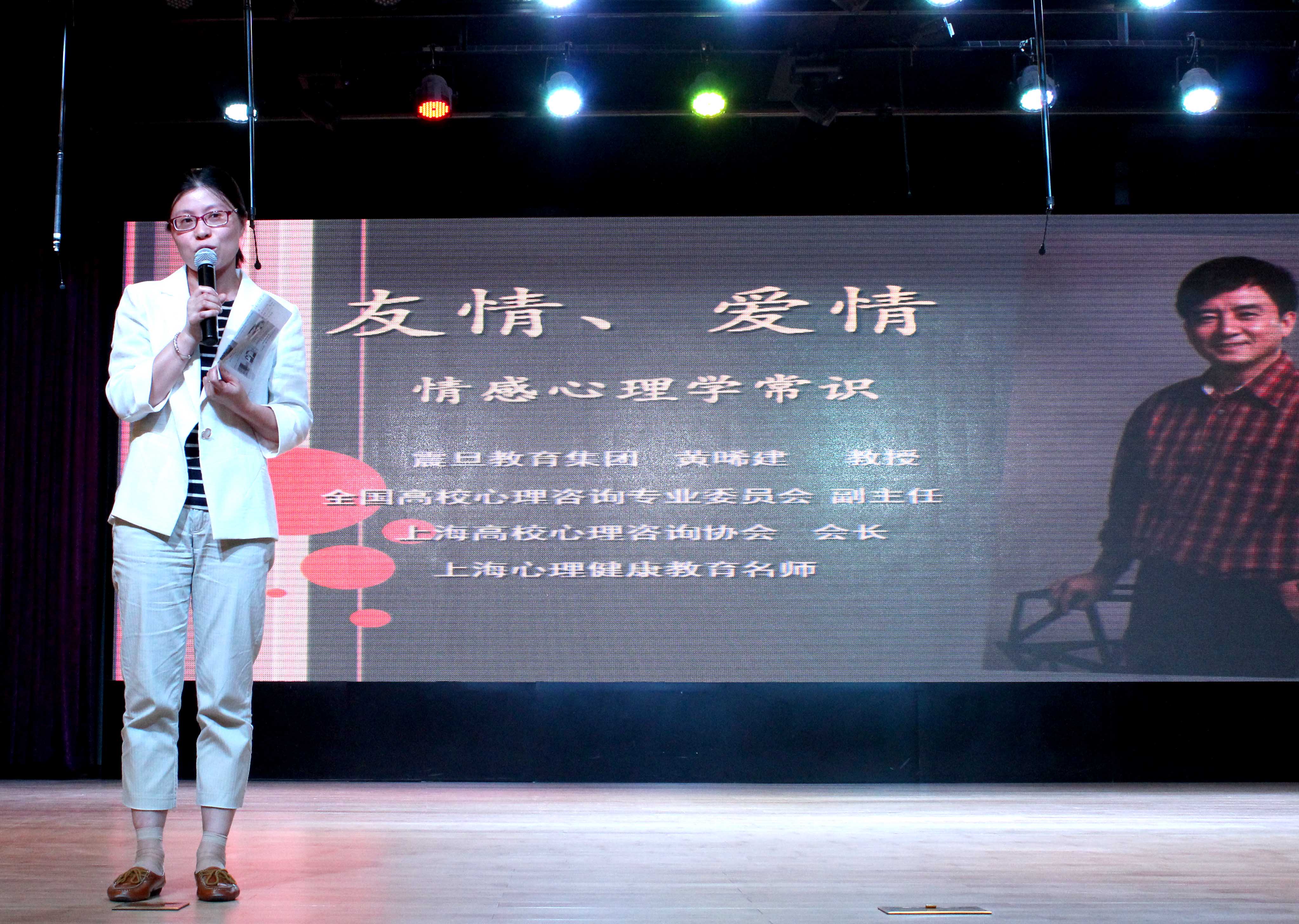 上海震旦职业学院2017年度大学生心理健康教育活动月系列讲座之一——《友情与爱情》——5月15日下午16:30在校大礼堂举行,主讲人为震旦教育集团党委书记黄晞建教授。校心理健康教育中心全体教师和全校600余名学生聆听了此次讲座。讲座由心理健康教育中心主任毛燕静老师主持。 学生处处长毛燕静主持活动 黄晞建教授,震旦教育集团党委书记,上海高校心理咨询协会理事长,全国高校心理咨询专业委员会副主任,上海高校心理咨询协会会长,上海心理健康教育名师。 讲座中,黄教授以幽默风趣的语言,介绍了什么是友情,什么是爱情,友情和爱情之间的关系,恋爱中男女的心理特点。黄教授向同学们特别强调了“爱情生活体现人的综合素质”,“它是一个伟大的精灵,它是神圣与凡庸之间的联结物……它是神与人分野的一座桥梁。因此,在它的身上结合着所有一切素质……”,希望同学们能以谨慎、负责任的态度对待自己的校园恋情。 在最后十分钟的提问环节,同学们踊跃提问,例如“为什么友情的小船说翻就翻?如何处理异地恋的问题?爱情的保鲜期,爱情的物质基础”等问题,黄书记用自己的人生经验和丰富的心理学知识解答了同学们的疑惑。最后讲座在热烈的掌声中落下了帷幕。 整个讲座秩序井然,同学们认真倾听,积极提问,收获颇多。