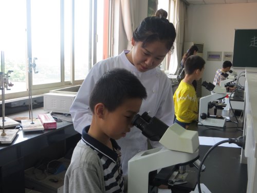 显微镜观察微生物可使同学们对看不到摸不着的微生物细胞有个更深刻的认识。孩子们可以在老师的帮助下利用显微镜观察各种微生物细胞、植物细胞和动物细胞,并按照老师的要求画出看到的微生物和动植物细胞图片拍照留念。带教老师还专门采集了自己的血液做成涂片,让孩子们看到了血液中的红细胞,神奇的微观世界呈现在体验者的眼前。