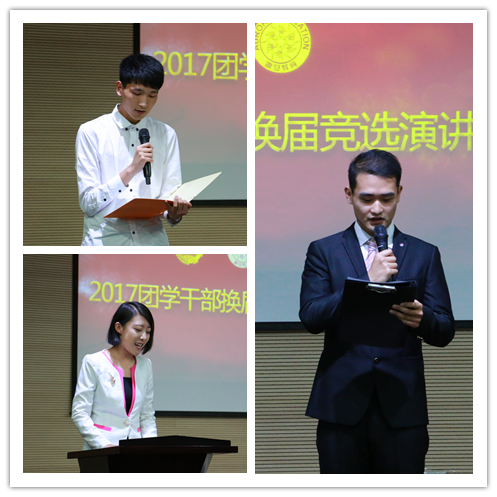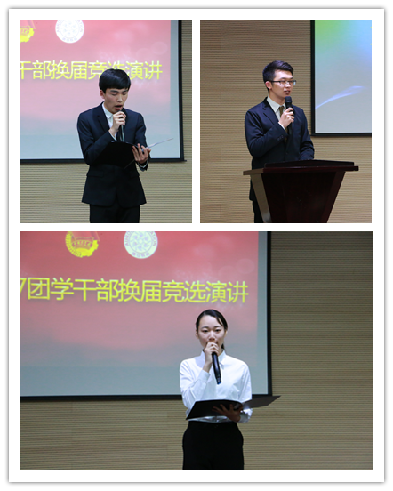 本次换届竞选演讲共分两个部分,部门部长竞选和主席团竞选。大会开始,主持人一一介绍了出席本次大会的老师,干事们按照部门顺序开始竞选演说,就竞选优势和部门工作规划提出了各自的见解。沉着冷静的团宣部胡冰,慷慨激昂的新媒体中心高季成,柔声细语的广播站王祎婧……每一位竞选者都拿出了最好的状态,精彩的演讲将现场气氛一次又一次推向了高潮,雷鸣般的掌声阵阵响起。每位候选人都用他们真诚的话语,表达了自己坚定的信念,愿意在以后的团学工作中继续努力,再创辉煌。