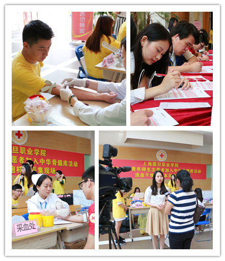 5月26日上午9点30分,上海震旦职业学院青年师生志愿加入中华骨髓库现场样本采集活动在我校体艺楼底楼举行,宝山区红会副会长金培生老师、校党委书记黄晞建老师、院长陈力华老师、党委副书记夏臻老师、文明办主任黄敏老师、团委书记曹晓莉老师亲临了本次活动。