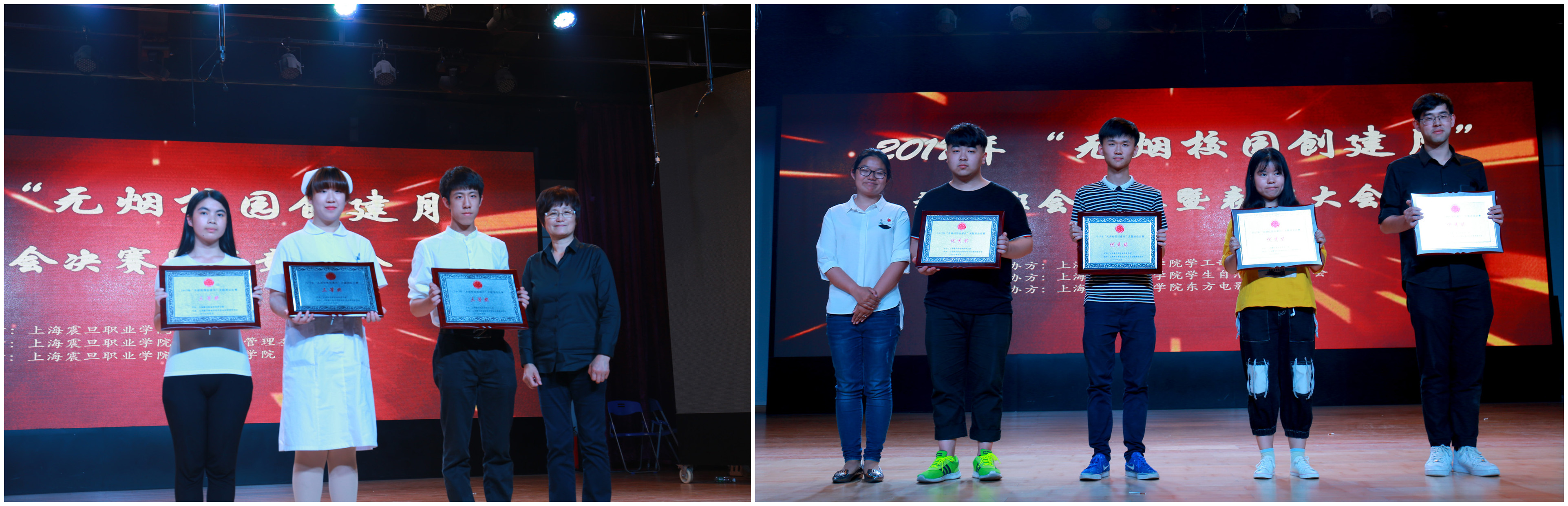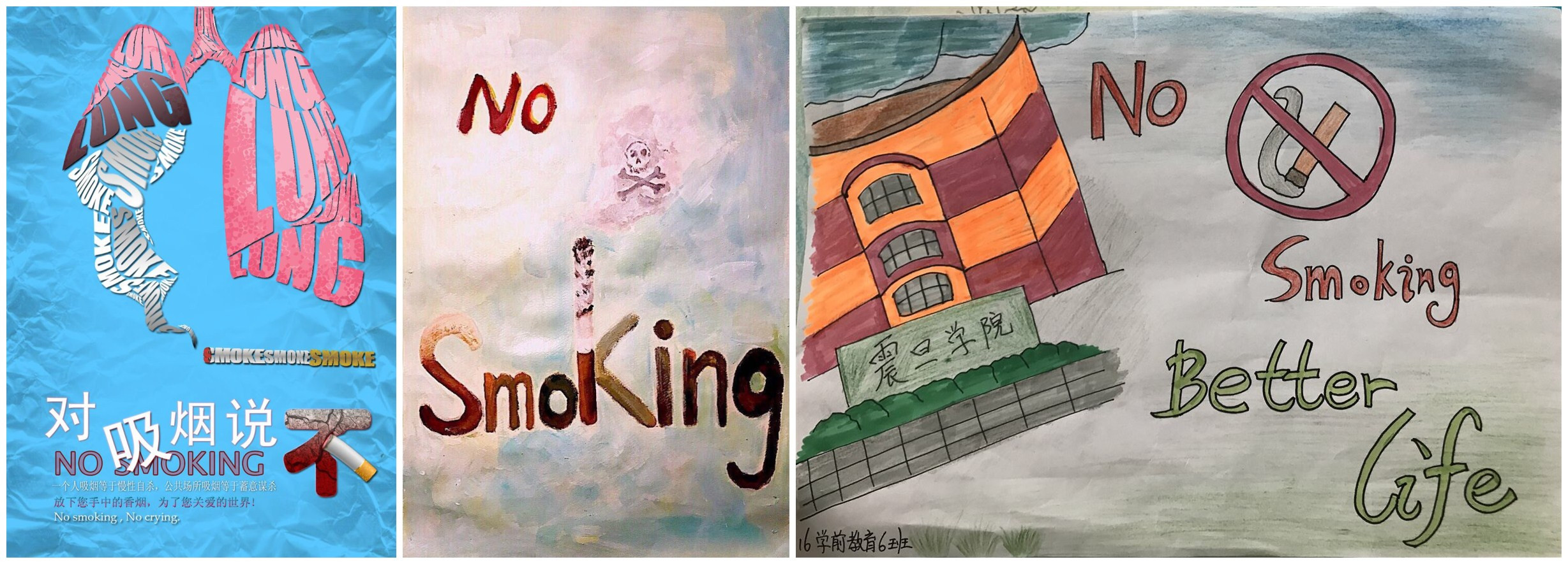 为贯彻落实《上海市公共场所控制吸烟条例》,加强学风建设,改善校园环境,树立和展现我校师生良好的精神面貌,养成良好文明的生活习惯,创造文明、洁净、优美的校园环境。学工部联合文明办,于2017年4月25日至5月31日开展了以“无烟校园创建月”为主题的系列活动。 此次“无烟校园创建月”活动于4月25日正式开启,各班通过开展禁烟主题班会,签名活动等多种形式让学生了解吸烟的危害,通过全校性的动员活动,使“禁烟运动”落到了实处,进一步推进了禁烟工作的顺利开展。 从4月25日至5月10日,各班开展了禁烟主题班会,设计了禁烟主题板报,让学生能更直观的了解抽烟的危害,学习有关戒烟与健康的小知识,从而多角度多方位增加禁烟宣传的力度。 从4月25日至5月19日,在全校范围开展以禁烟为主题的海报设计和禁烟标志设计大赛,激发学生创造力与想象力的同时,让学生以校园主人翁的姿态,将校园禁烟与自身的健康相关联。各班级进行初选后,由各学院进行复选上报优秀的作品,通过网络投票和校评审小组评议,最终评选出5幅优秀禁烟海报和6幅优秀禁烟标志作品。 5月31日中午在文化广场开展了“以烟换糖”活动,即用一根(或多根)香烟到活动站点换取一颗(或多颗)糖果,并在宣传展板上签下自己的戒烟签名,让吸烟者以自己的实际行动带动身边人,激励大家共同为创建“无烟校园”而努力。 5月31日16:30在学院大礼堂开展了2017年“无烟校园创建月”禁烟主题班会决赛暨表彰大会,出席本次大会的有上海震旦职业学院党委书记黄晞健,校长陈力华,党委副书记夏臻,学工部部长毛燕静,文明办主任黄敏,团委书记曹晓莉,以及各二级学院党总支书记和辅导员。大会分为两大部分。首先开展禁烟主题班会决赛,各学院代表队通过PPT演说加情景剧的形式来呈现,最终16机电获得一等奖,16护理7班、16音像班获得二等奖,16会计2班、16护理5、6班、16学前3班获得三等奖,15营养监测班、16艺术班、16数字传媒班、16工商班分获优秀奖。大会第二部分由校领导对本届“无烟校园创建月”系列活动获奖同学和班级进行表彰和颁奖。 大会最后,陈力华校长对本次活动进行了总结。他指出青年学生一要做到校园内不吸烟,二要尽早戒烟,三要将禁烟工作落实到实处,让“禁烟”成为我校一个常态工作。陈校长鼓励我们要为争做民办高校中的第一个无烟校园而努力。 通过本届禁烟活动的成功开展,不仅使广大师生们了解到吸烟的危害,而且还在一定程度上增强了师生们对身体健康的认识,消除了在吸烟认识上的误区,同时更达到了“创建无烟校园”的预期效果,使禁烟活动向纵深发展,为构建“文明震旦”夯实了坚实的基础,为建设健康、和谐校园做出了贡献! 供稿:学生处 徐磊 审核:胡克文