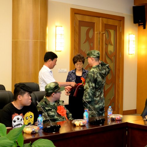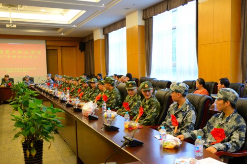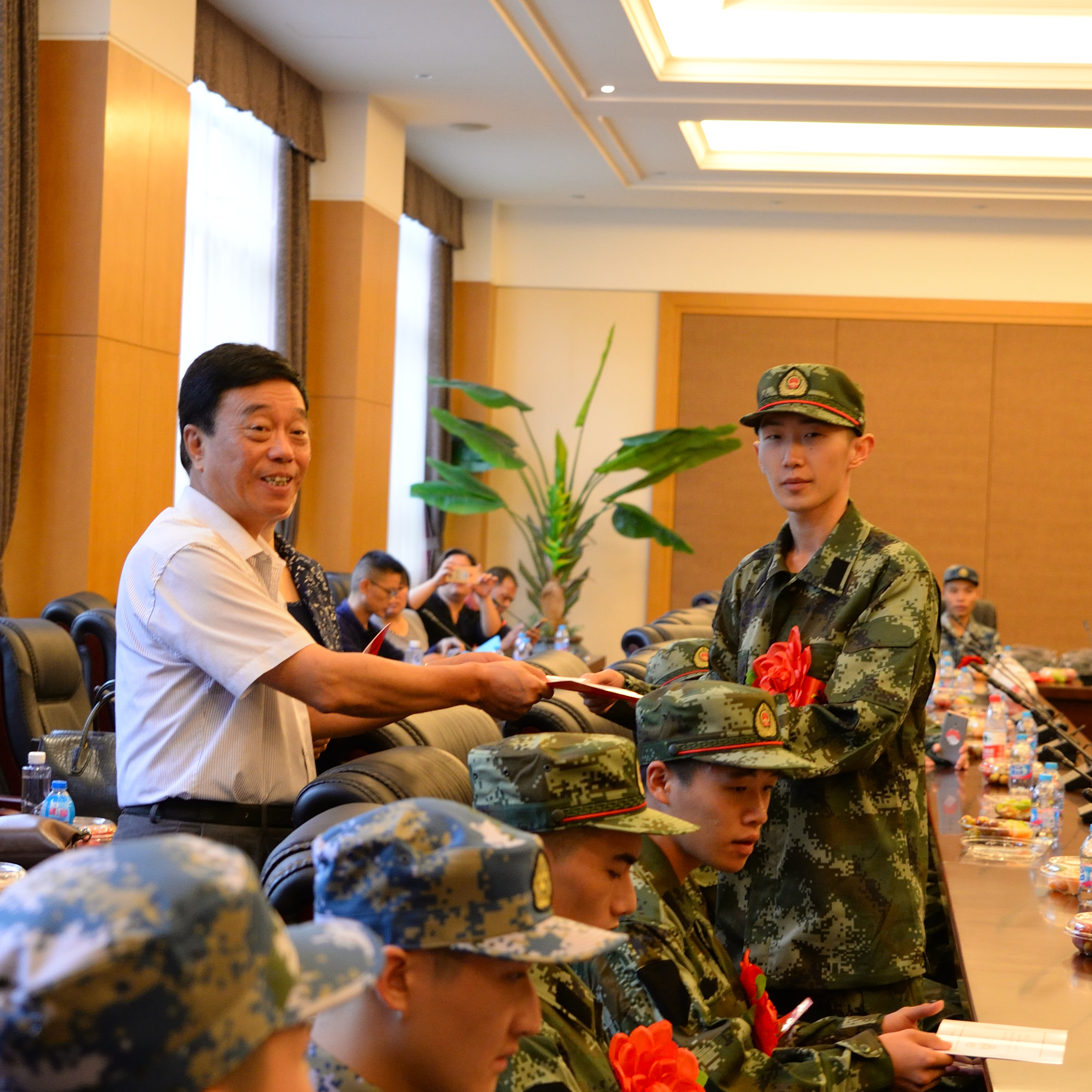 2017年9月15日下午,我院在体艺楼国际会议中心隆重举行2017年新兵入伍欢送大会。校长陈力华同志,党委副书记夏臻同志,以及武装部、学生处、部分学院辅导员、入伍新兵、新兵家长等40余人参加了欢送会。