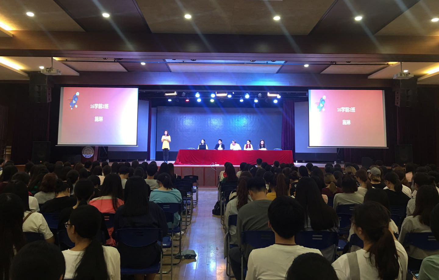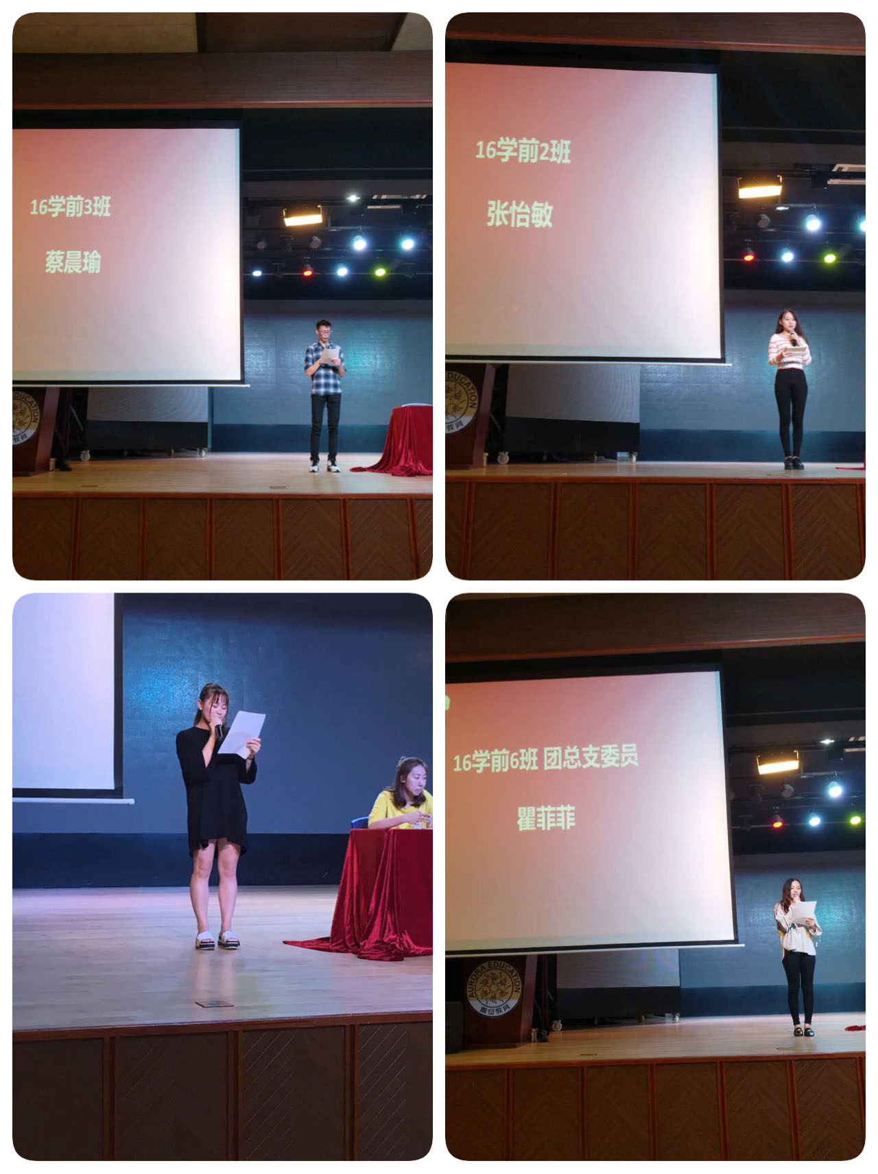 为帮助2016级学生在大二学习生活中,找准自身发展的定位,2017年9月25日下午,教育学院在校大礼堂召开了2016级年级大会。出席本次大会的有教育学院院长党支部书记钱源伟老师、副院长学前专业主任李杰老师、校艺术中心主任高瞻老师、教育学院党支部副书记张军胜老师、教育学院团总支书记杨彦琛老师以及各专业老师和辅导员老师们和全体2016级学生。 大会开始,来自16学前2班的施琳、张怡敏同学,16学前3班的蔡晨瑜同学和16学前6班的瞿菲菲同学分别从学习与实践、艺术类发展、学习生活和团总支社会实践的等角度进行发言。副院长李杰老师对他们的发言进行了总结,希望大家以这几位同学为榜样,找准定位,坚定目标。 学生代表发言 音乐舞蹈中心主任高瞻老师以及苏馨、夏禹、宋佳等老师分别从音乐、舞蹈、美术课程角度对大家在大二年级的学习与考证提出了要求;基础理论教研室袁佳薇老师和张石伟等老师,就专业理论课的学习,希望大家能抓紧大二的时间,夯实专业基础;陈晓艳老师总结了大一学期英语考级情况,期望同学们能提升自我要求,争取在本学年成功通过大学英语四级。 随后,学院党支部副书记张军胜老师从党务和日常的学生工作方面发言,要求大家进一步端正思想,从日常学习生活方面严格要求自己,不可懈怠。梁甜等辅导员老师也根据近三周同学们的表现进行了简短的发言,要求大家合理安排专业学习和校外兼职,掌握平衡。 教育学院钱源伟院长讲话 钱源伟院长对大一学年同学们各方面的表现进行了回顾,公布了学院2016级英语三级、普通话考级、舞蹈师资等考试的通过率,以及中华骨髓库志愿者、献血志愿者等数据,充分肯定了我院全体师生在过去一个学年里做出的共同努力,并对同学们未来的就业给出了建议,希望大家能在大二年级通过专业学习与校外实践,明确自己的就业方向。 大会的最后,团总支书记杨彦琛老师对上一学年教育学院团总支委员戴云等同学进行了“2016-2017年度学院最佳奉献奖”表彰,并鼓励更多同学参与到学院的日常工作中来。 “2016-2017年度学院最佳奉献奖”获得者开与学院老师合影 希望我院2016级全体同学能通过此次大会,珍惜大二一学年的时光,认真笃实,找准定位。 通讯员:梁甜 盛金时 审核:胡克文