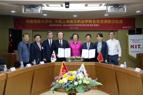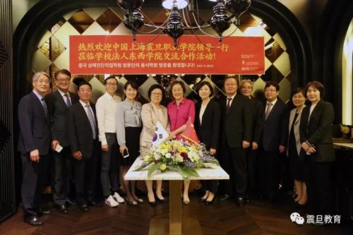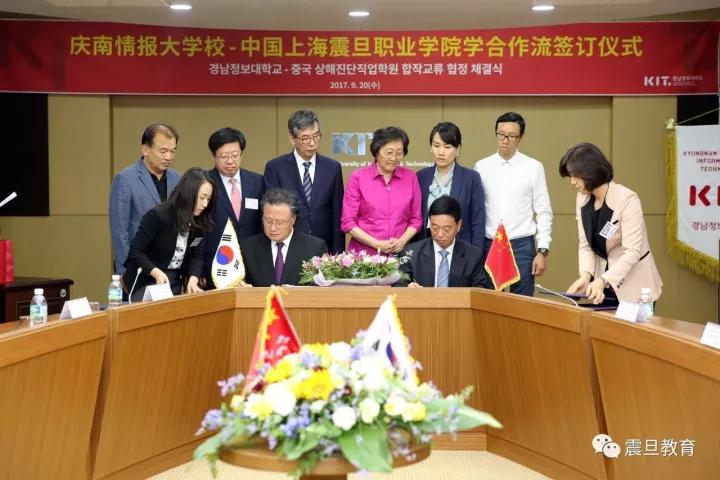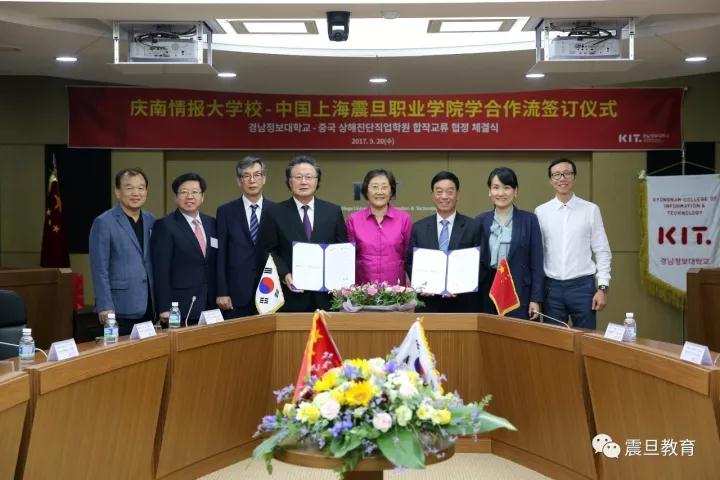 2017年9月21日,上海震旦教育集团创始人张惠莉、震旦教育集团董事长张沈、上海震旦职业学院校长陈力华一行,在韩国釜山与韩国庆南情报大学签订了战略合作协议。 庆南情报大学建于1965年,设有28个系,韩国教育部专科大学评估中被评为“最优秀的大学”,知名专业有:IT、CT、保健福利、国际观光、制鞋产业、汽车产业等。东西大学设有商务、影像、国际关系、外国语、社会福利、旅游、信息工学、因特网工学、建筑、应用生命工学、数码Contents、设计、体育工学、表演艺术等14个系,48个专业。 早在2017年6月,韩国庆南情报大学秋万锡总长、林秀岩教授及东西大学李炳国教授和金钟琪教授来到震旦职业学院访问,通过沟通双方发现有很多互通有融之处,认为可以在音像技术、设计、汽车维修技术等专业寻求合作契合点,亦可在美容专业创建新的合作。双方赞同尽快建立校际关系、促成两校合作协议书签订以及具体合作专业等事宜。 协议签订仪式当天,先播放了震旦与庆南大学的宣传视频,双方代表致辞后,陈力华校长与庆南情报大学总长秋万锡签订了两校合作协议书,张沈董事长代表震旦与秋万锡总长交换了礼物,并合影留念。 “教育国际化”是“震旦”创办以来一贯秉持的发展方向,此次战略合作协议的签订,是对前次商谈的具体落实,也是震旦职业学院践行教育国际化战略又一重大成果。