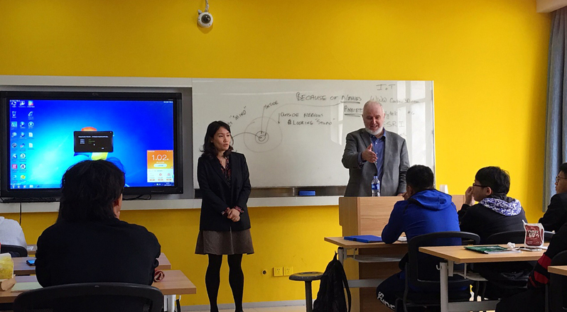 加州浸会大学(CBU)成立于 1950 年,被“美国新闻与世界报道”评为全美顶尖大学之一,美国西部大学排名第38位。自2016年起,我校与加州浸会大学开展了“国际物联网(中美合作)”专业,旨在培养具备全球视野的高素质物联网专业人才。因此,此次访问,Dr. Donaldson特意走入17级国际物联网专业的课堂,与同学们亲切交流,及时了解学习动态。