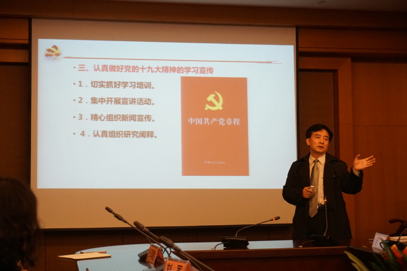 夏臻副书记就十九大召开以来,我校学习宣传贯彻十九大工作做了小结,她说:自十九大开幕,党委和团委就布置了学习,各支部都召开了组织生活会,学习十九大精神。党委将根据中央和市委要求,进一步制定下一步学习宣传贯彻十九大精神计划,在全校掀起学习宣传贯彻十九大精神的高潮。