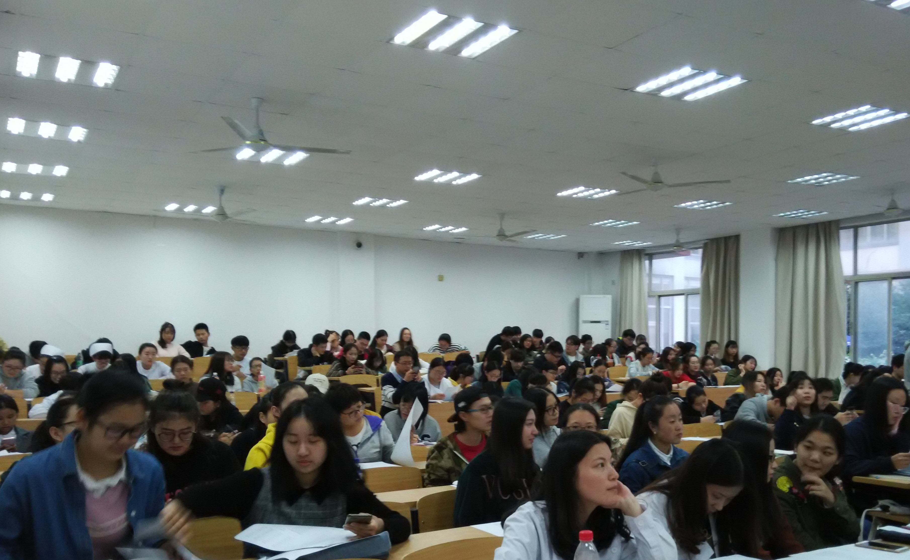 徐佑琮老师的两场讲座吸引了全校各个学院不同专业的学生前来聆听。他重点讲述了文字和语言的关系,汉字应用水平测试的渊源以及规范汉字书写的重要性,并结合模拟试卷总结了汉字应用水平测试取得高分的技巧。