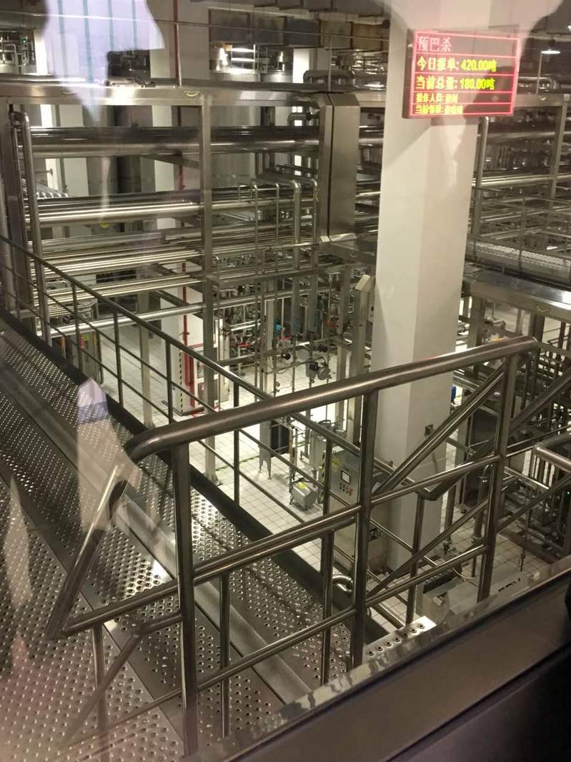 光明乳业华东中心工厂是目前世界最大的乳品单体工厂,投资14.21亿元,占地约232亩,共有62条生产线,日产2600吨。在讲解员的引领下,同学们对光明各产品的特点和尖端科技在乳品方面的应用有了初步了解;再沿着1.6公里的参观通道深入工厂内部学习,纵横交错的管道、巨大挺立的配料罐、源源不断的包材,使同学们对乳品生产工艺有了进一步的认识。看到巨大的车间在整洁的环境下井然有序、分秒不停地生产,在场同学无不感到惊叹与震撼。
