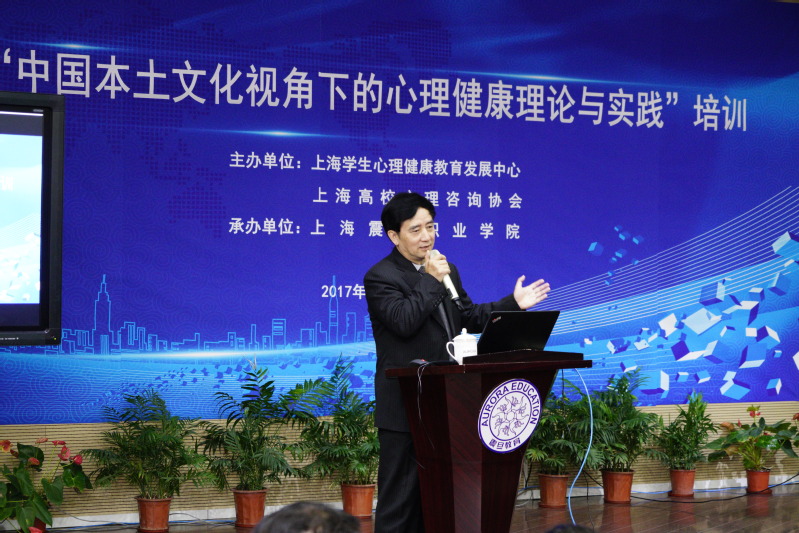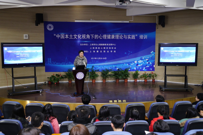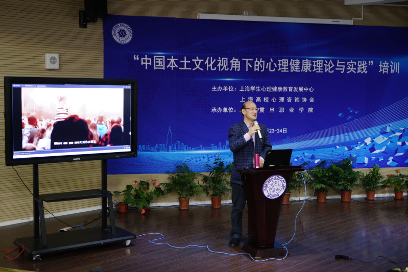 为深入学习落实党的十九大会议精神,贯彻落实全国和上海高校思政工作会议精神,推进本土心理健康教育的发展,由上海学生心理健康教育发展中心和上海高校心理咨询协会主办、上海震旦职业学院承办的“中国本土文化视角下的心理健康理论与实践”培训班在震旦职业学院体艺楼报告厅隆重举行。本次培训班为期两天,共有四位教授担任主讲嘉宾,他们分别是上海市文史研究馆副馆长,上海市高校心理咨询协会副理事长王群教授,上海中医药大学学工部副部长、心理咨询与发展中心主任成琳老师,上海立信会计金融学院心理中心主任、上海高校心理咨询协会副会长刘纯姣教授和上海出版印刷高等专科学校思政部主任马前锋教授。培训班历时2天,近100名学员来自全市20个学校。