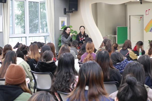 随后,小天鹅幼儿园安排了三位宝山区骨干幼儿教师跟同学们交流分享专业成长的故事,为我们的学生提供了很多宝贵的经验。