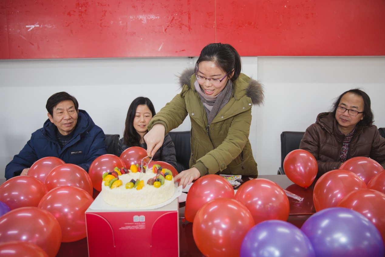 伴随着一曲《生日快乐歌》唱响,传媒艺术学院集体生日会拉开帷幕,学院工会组长蔡婷嬉老师捧上鲜美蛋糕,并组织大家集体合影。学院集体生日会上,学院院长、党总支书记张继平同志首先表达了集体生日会的意义,他强调学校为了增强教职工凝聚力,积极鼓励学院集体过生日,并给予一定的经费支持,今天我们利用年终总结交流会之际,一起共同庆祝全体教职工的生日,互祝生日快乐!学校人事处副处长钱毅老师代表学校工会也给全体教职工送上了生日祝福。最后,由当天过生日的辅导员邵慧老师为大家切蛋糕。