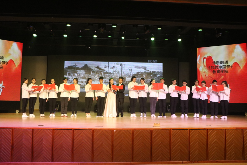 展演由17学前3的刘烊的一首《power wolf》拉开帷幕。在舞蹈板块中, 16学前7班的杨怡雯同学表演的藏族民间舞《玛吉阿米》,16学前4班的张星熠同学表演的中国舞《咏荷》,16级陈茹韫、师文静、吴仙红3位同学表演的舞蹈《风筝误》,都使观众们眼前一亮,17学前5班曹雨晖同学表演的舞蹈《乐悠游·花儿》,16级的赵云慧等同学表演的啦啦操,迎来观众们一阵阵的喝彩与掌声;来自16学前教育2班的张怡敏同学展示的一节小班科学活动的说课《好玩的水》,体现了说课对提高教师的备课质量、教学效率和教师的组织能力、表达能力等的重要作用;英语故事板块中,16学前7班吴雅菲《The Princess and Pea》 和17学前3 班栾婷婷《The Monster is Coming》,用绘本的英文故事淋漓尽致地表演,可全面帮助孩子建构精神,培养多元智能;16学前6班刘璇宛如天籁的歌曲《关雎》和17学前6班李思甜《有形的翅膀》更是体现了教育学院学生的扎实的声乐功底;由16、17级陈祎阳等同学带来的琵琶、古筝、钢琴、架子鼓《春雨》《林冲夜奔》等等的曲目,乐声悠扬,溢满了整个大礼堂,让人陶醉,也将整个晚会推至高潮。最后,铿锵有力的诗歌朗诵《我的中国梦》为本届才艺大赛展演画下一个完美的句号。