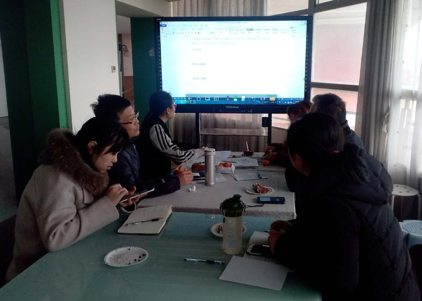 图为经济管理学院老师们在修改各专业招生简章