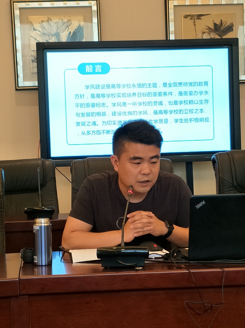 沙龙的第三项议程由学生处副处长徐磊对开学至今的学风建设工作进行了回顾。徐磊强调学风建设是学校学生管理工作的重中之重,学生处通过学生自治管理委员会的学生自律检查收集到的数据显示,目前我校学风情况总体良好,各班上课平均出勤率达到95%左右,教室环境总体干净整洁,宿舍卫生也较之前有了显著改善。良好的学风是全体师生共同努力的结果,徐磊认为,通过学生自治管理委员会的规范检查、辅导员的及时跟进处理,我校的学风建设还能更上一个台阶。最后,徐磊还列举了本学期已发生的几起校园突发事件。他指出辅导员对班级突发事件应及早发现、及时上报,第一时间将突发事件控制在萌芽状态。