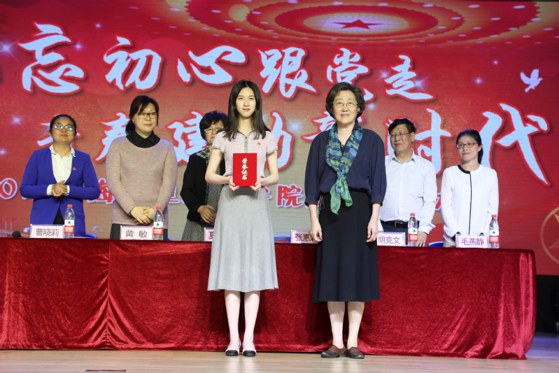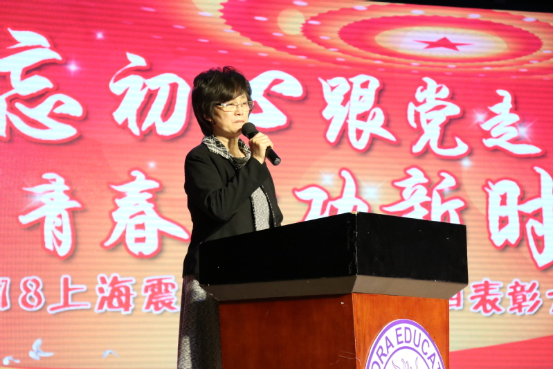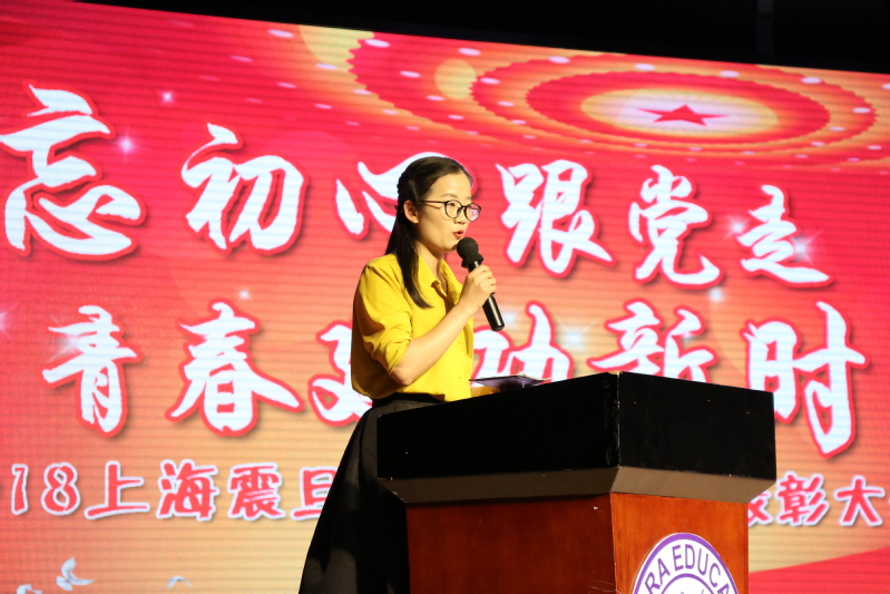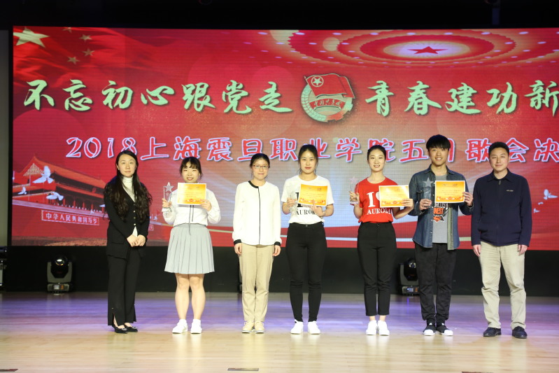 五四表彰大会初始,校团委书记曹晓莉老师宣读了《关于表彰2017-2018学年优秀团员、优秀团干部、杰出志愿者、优秀志愿者、五四红旗团支部等的决定》。今年共有139名优秀团员、100名优秀团干部、6名杰出志愿者、25名优秀志愿者、15个五四红旗团支部、29个最佳主题团日活动以及十佳社团获得表彰,各奖项获奖代表依次上台领奖,与领导老师合影留念。2017年度上海市“优秀共青团员”,来自16检测班的王艺淇同学代表此次获得表彰的先进个人发言,她提到作为当代青年大学生,我们要自立、有理想、善学习、讲道德、勇奋斗,积极响应号召,以青春之我、奋斗之我,谱写青春华章。表彰大会最后,校党委副书记夏臻老师讲话,她希望震旦青年能牢记习总书记嘱托,成为爱国、励志、求真、力行的新时代大学生,高举习近平新时代中国特色社会主义思想伟大旗帜,在青春年华时不忘初心,砥砺前行,无愧于时代,无愧于人民。