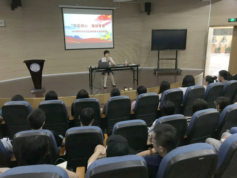 根据《中共中央组织部关于做好高校毕业生党员组织关系管理工作的通知》(组通字〔2015〕33号)和市委组织部、市教卫工作党委组织干部处的工作要求,2018年6月25日下午,我校在体艺楼报告厅举办2018届毕业生党员离校主题教育活动, 校党委副书记夏臻老师、组织部长黄敏老师、党办副主任张军胜老师和40余名毕业生党员参加本次“不忘初心·激扬青春”专题组织生活会。