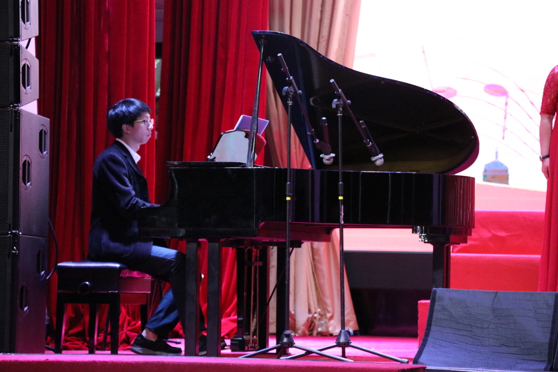 我校教工合唱团由陈力华校长担任团长、宣传部金瑶老师担任领队、音乐舞蹈中心高瞻老师任指挥、夏禹老师钢琴伴奏。所演唱的革命红歌《在太行山上》铿锵有力激情澎湃,团员们饱含深情的演唱响彻整座礼堂,赢得了台下观众阵阵热烈的掌声。19所高校依次献上赞歌后,在展演尾声伴随着熟悉的旋律《歌唱祖国》,全场教师共同高歌,以此祝福我们伟大的祖国,展演活动在浓厚的爱国氛围中成功落下帷幕!