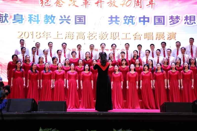 10月19日,我校教工合唱团参加了在上海理工大学举行的以“献身科教兴国共筑中国梦想”为主题的合唱展演。同台展演的有复旦、同济、华东师大等19所高校教职工合唱团。本次合唱展演由上海市教育工会主办、上海市教育工会合唱协会、上海理工大学承办。