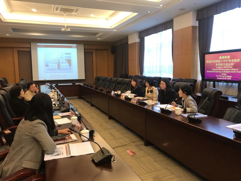 2018年10月22日至24日,韩国庆南情报大学护理系教授卞恩京、朴孝鎭、崔允淑来我校交流访问。学校董事长张沈、校长陈力华以及公共卫生与护理学院院长赵佩君、护理专业主任吴景芳、护理专业教师张伊倩、陈唯伊、王璐以及校国际交流处老师共同参与此次交流。