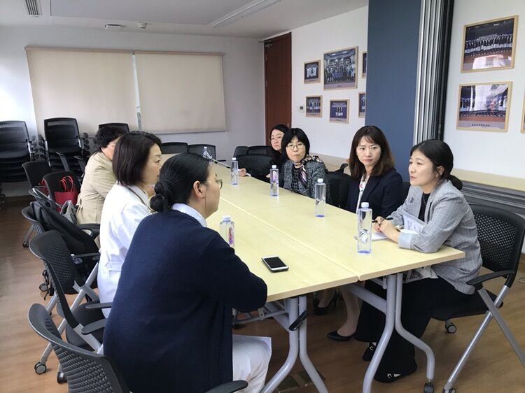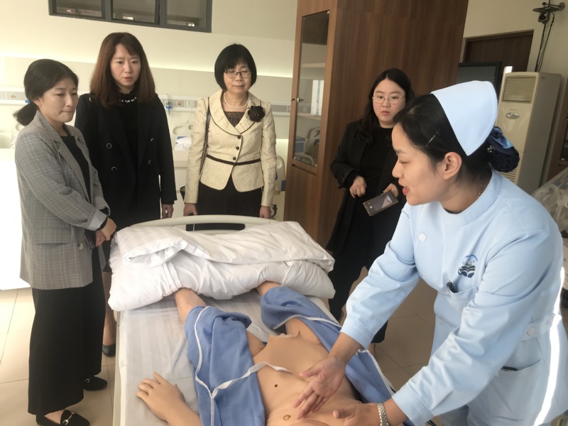 韩国庆南情报大学护理系教授一行,首先来到我校校企合作医院,上海交通大学附属仁济医院护理实训实践中心进行参观。仁济医院护理部副主任徐老师热情地接待了韩国外宾以及我校的参观访问人员。她表示,仁济医院作为我校护理专业的教育实训实践基地,多年来不仅为我校护理人才的培养提供了宝贵的实习机会,更是作为教学医院担负着培养好护理人才的重责。作为上海市的一所三级甲等医院,在仁济医院护理部的实习实践无疑是高标准严要求的,护理部实践总结出的宝贵的临床实践经验也是为我国护理学科的发展贡献的一份力量。韩国教授就中国的医疗体系、护理概况、仁济医院护理部的发展方向,护理人才培养等方面进行了深入的了解和询问,双方也就彼此在护理领域的相同点和差异交换了意见。随后,在仁济医院心内科以及乳腺外科护理部主任的带领下,参观了病房设置以及护理实践的具体操作。仁济医院护理部全电子化的流程操作系统和人性化的病房公共区域布置给韩国教授们留下了深刻的印象。