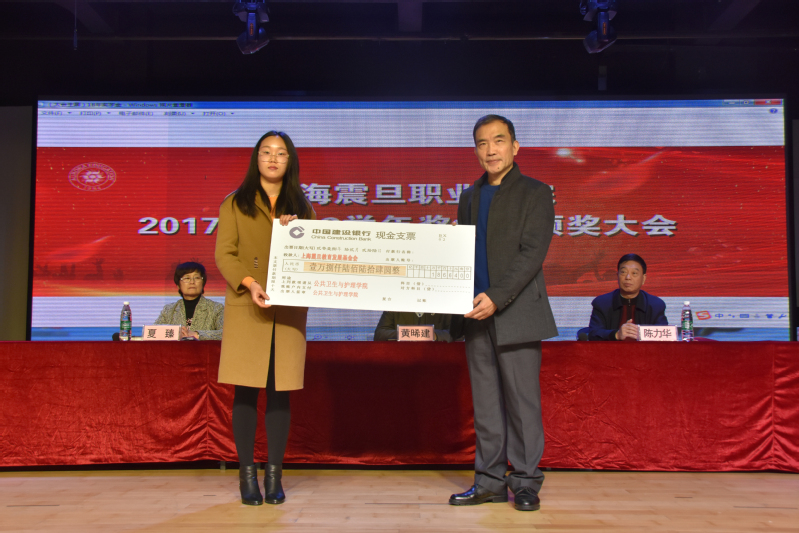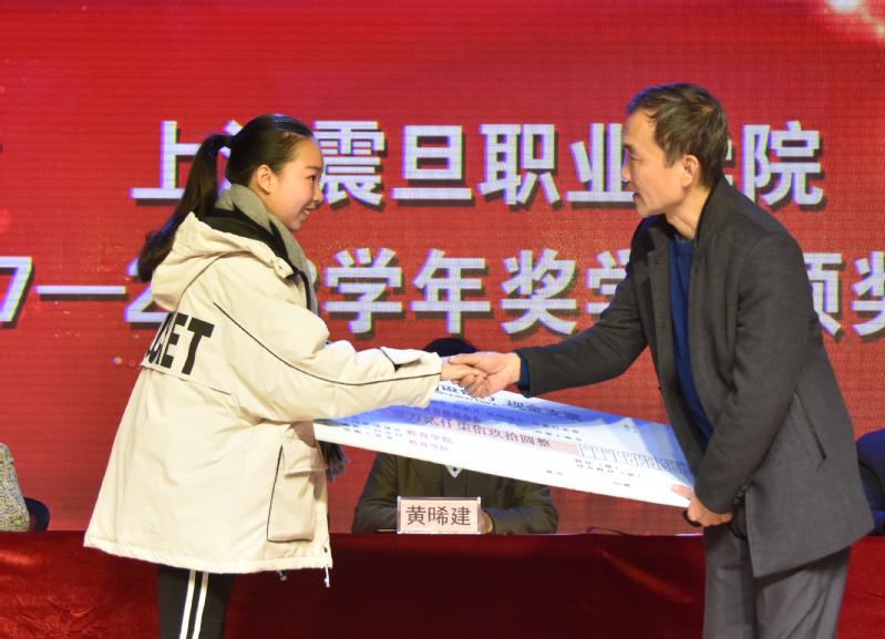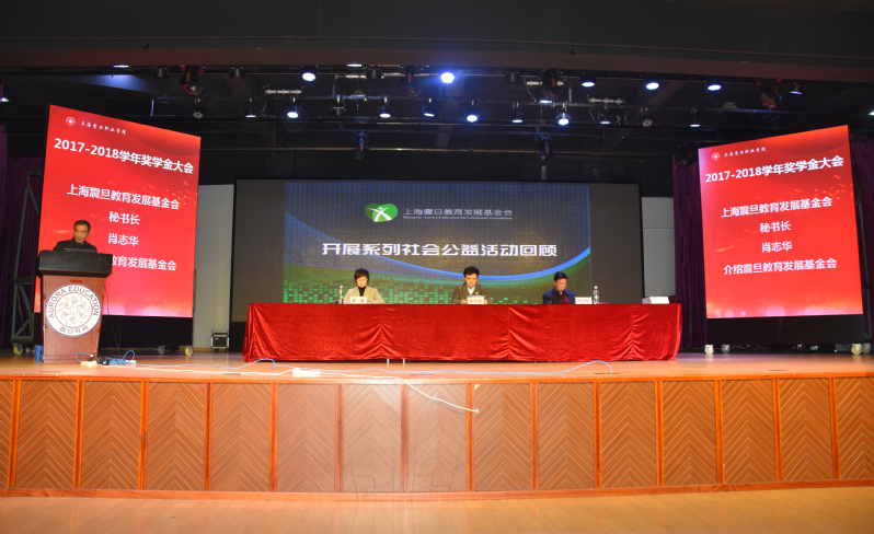 2018年12月26日,上海震旦职业学院2017-2018学年奖学金颁奖大会在大礼堂隆重举行。上海震旦职业学院党委书记黄晞建、校长陈力华、校党委副书记夏臻、出席了此次颁奖大会。此次颁奖大会由学工部部长毛燕静主持,参加大会的还有各二级学院院长、分管学生工作的党总支书记、教师代表、全体辅导员以及2017级获奖学生和2018级学生代表。