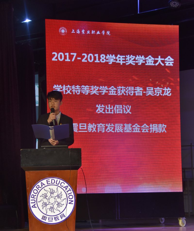 此次颁奖大会上,所有获奖同学还主动发起了“感恩母校、反哺社会”公益捐款活动。在本学年特等奖学金获得者吴京龙同学的倡议下,获奖同学纷纷向上海震旦教育发展基金会捐款,希望实现个人价值的同时努力回报社会.