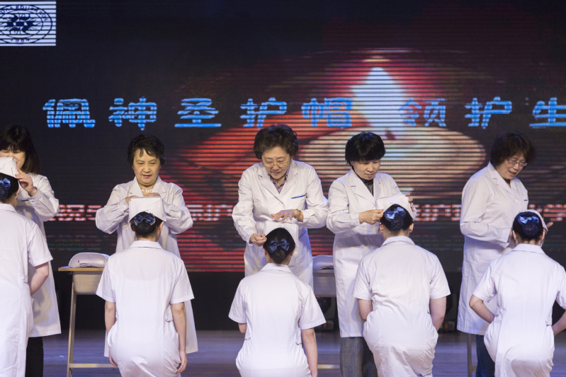 上海震旦职业学院公共卫生与护理学院于2019年5月10日下午12:30在大礼堂以“佩神圣护帽,领护生风采”为主题,举办了这次庆祝5.12国际护士节暨2017级护理专业学生授帽仪式。