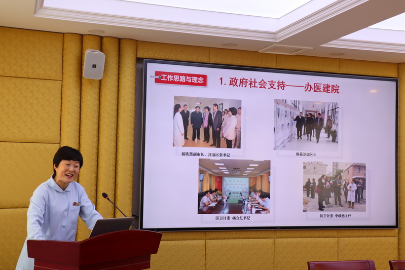 交流工作在热烈、友好的氛围中展开。首先宝山中西医结合医院副院长黄国毅致辞欢迎陈力华校长一行来院走访,接着护理部王霞主任详细介绍了医院的发展历史和现状,并图文并茂地向大家展示了医院在学生实习带教管理、教学及相关工作的具体内容和要求,同时也提出一些工作中遇到的问题供大家探讨交流。