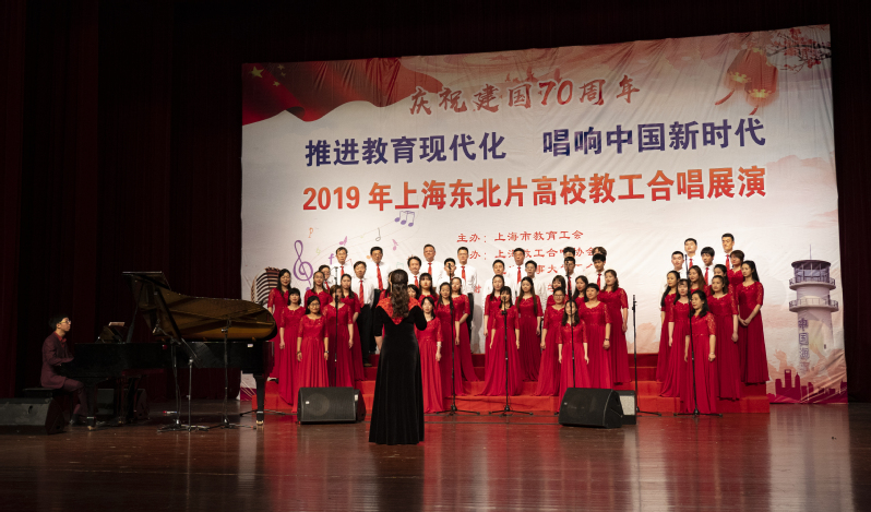 5月24日,上海市教委主办、上海海事大学承办的“2019年上海东北片高校教工合唱展演”在上海海事大学落下帷幕。合唱展演主题为“推进教育现代化,唱响中国新时代”,旨在庆祝建国70周年。此次活动共有包括复旦大学和同济大学等著名高校在内的10所高校参加,合唱节目精彩纷呈。我校的震旦教职工合唱团也积极参加了这场合唱盛会,以《我和我的祖国》和《外婆的澎湖湾》两首经典歌曲作为参演作品,表达了震旦人对祖国母亲的深切情感,同时也展现出我校教职工活力四射的精神面貌与艺术表现力。