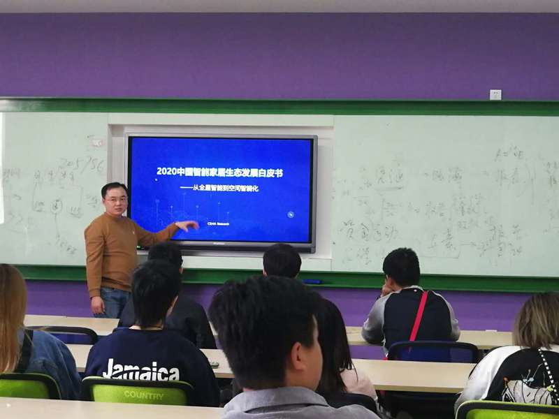 蔡工从AIoT时代智能家居的定义、国内外智能家居市场的发展动态、生态格局等方面系统性地讲解了智能家居行业的总体状况,围绕智能家居产业链的上下游云平台、控制器、芯片、用户需求、应用场景等生态整合的情况,和师生探讨了该行业现有技术、产业发展瓶颈、信息安全等细节问题。最后,从公司招聘、物联网专业的未来就业给物联网专业学生提供了诸多有效建议。