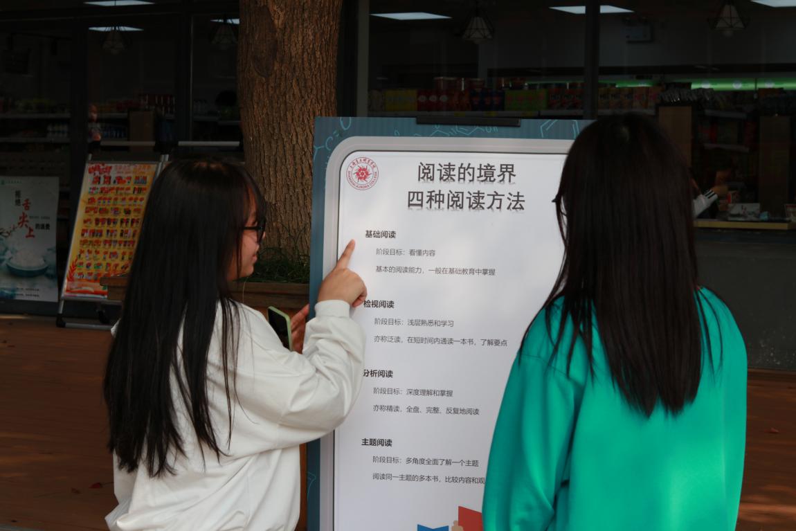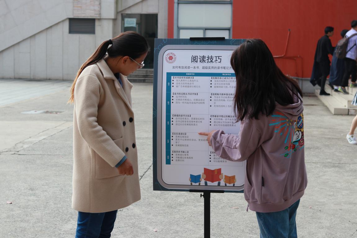 2020年11月2日,校团委学生会学习部、图管会和图书馆联合举办了“书香进校园“主题展览及阅读分享会。此次活动以“实用的阅读技巧”为主要内容,分15块展板进行展览介绍,希望大家通过观展学习并运用阅读技巧,扩展思维与知识,从而引导师生形成全民学习的校园文化氛围。