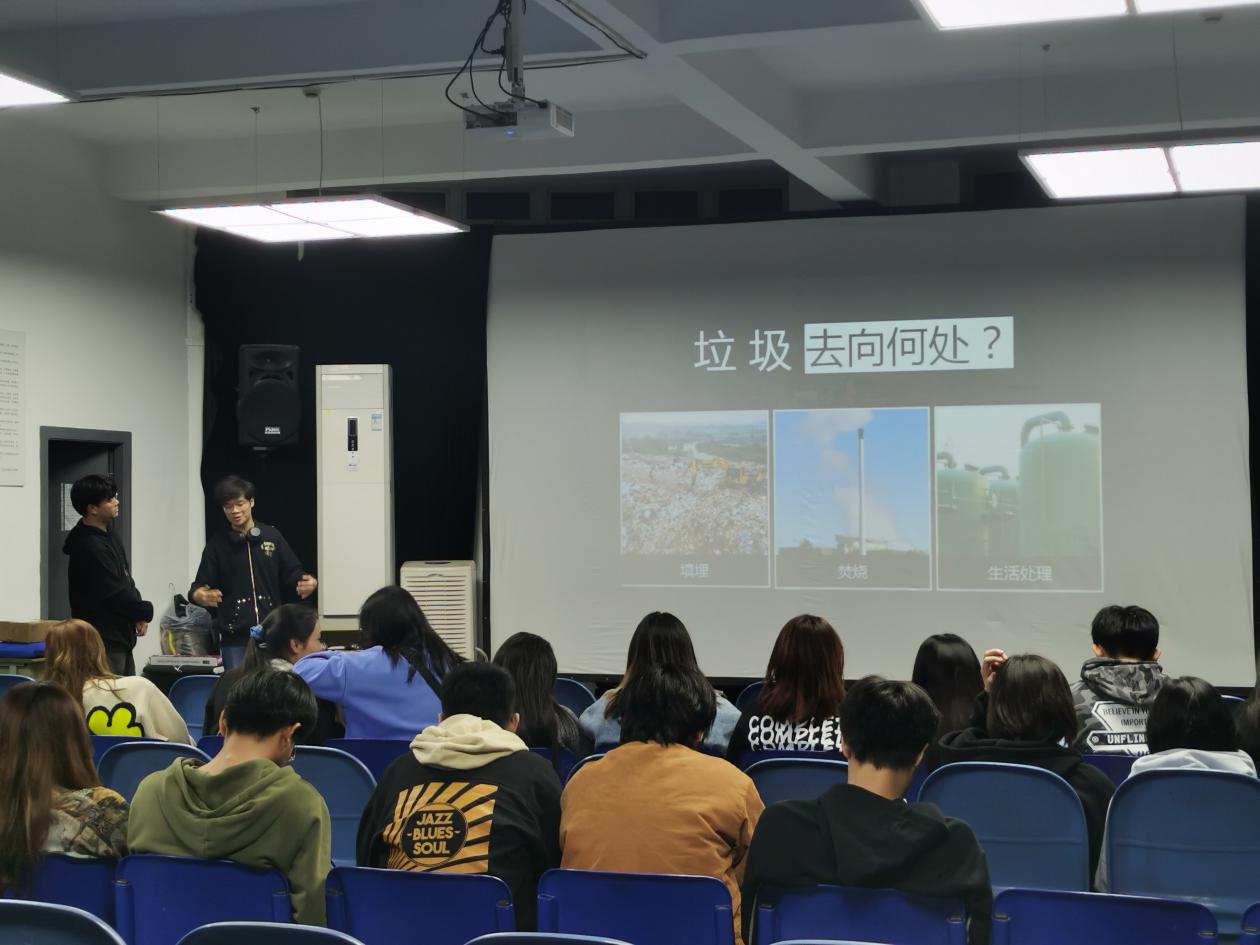 班会上,2020级影视编导班姚天浩同学通过PPT展示的形式,为大家详细地介绍了城市垃圾分类的基本方法,教大家如何在生活中进行正确的垃圾分类。