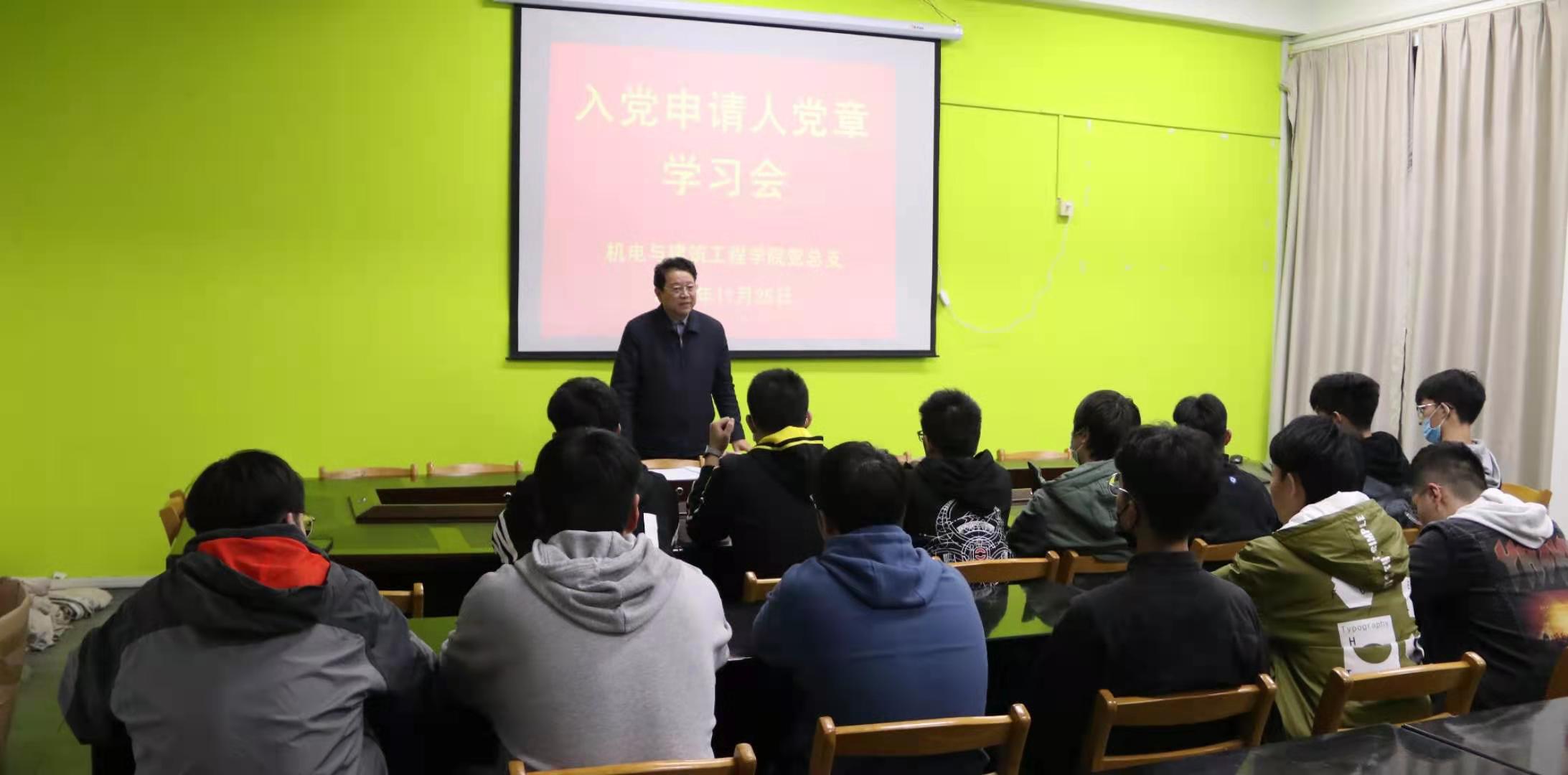 2020年11月25日晚,机电与建筑工程学院党总支举办入党申请人党章学习会。学院党总支书记陈亚立主持会议并主讲,部分没有课的入党申请人参加。