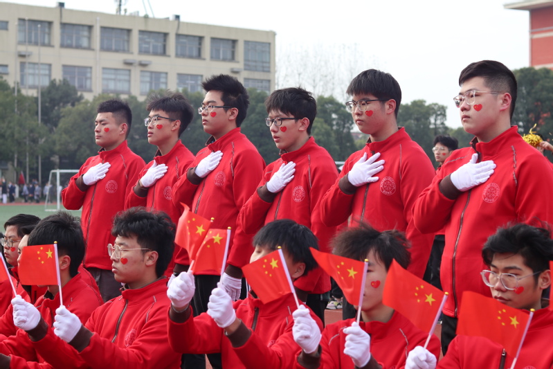 国旗队列队完毕,伴随着庄严的国歌,鲜红的国旗慢慢升起,本次体育节闭幕式正式开始。