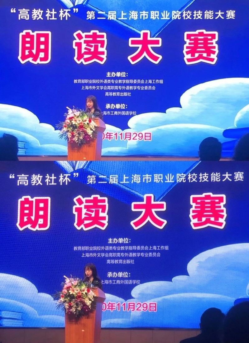 11月29日上午,“高教社杯”第二届上海市职业院校技能大赛朗读比赛在上海市工商外国语学校举办。我校19级学前教育专业学生唐诗懿在此前的线上复赛中成功突围,参加了本次决赛。