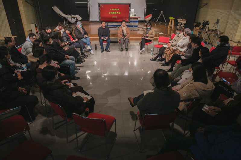 2021年3月5日下午,东方电影学院在新闻演播厅召开了东方电影学院新学院成立以来的第一次教学工作会议,安排部署新学院新学期教学工作任务。学院院长、党总支书记吕继红教授主持会议,各专业主任、实训室主任、教学秘书、辅导员、专兼职教师、实训员参加了会议。