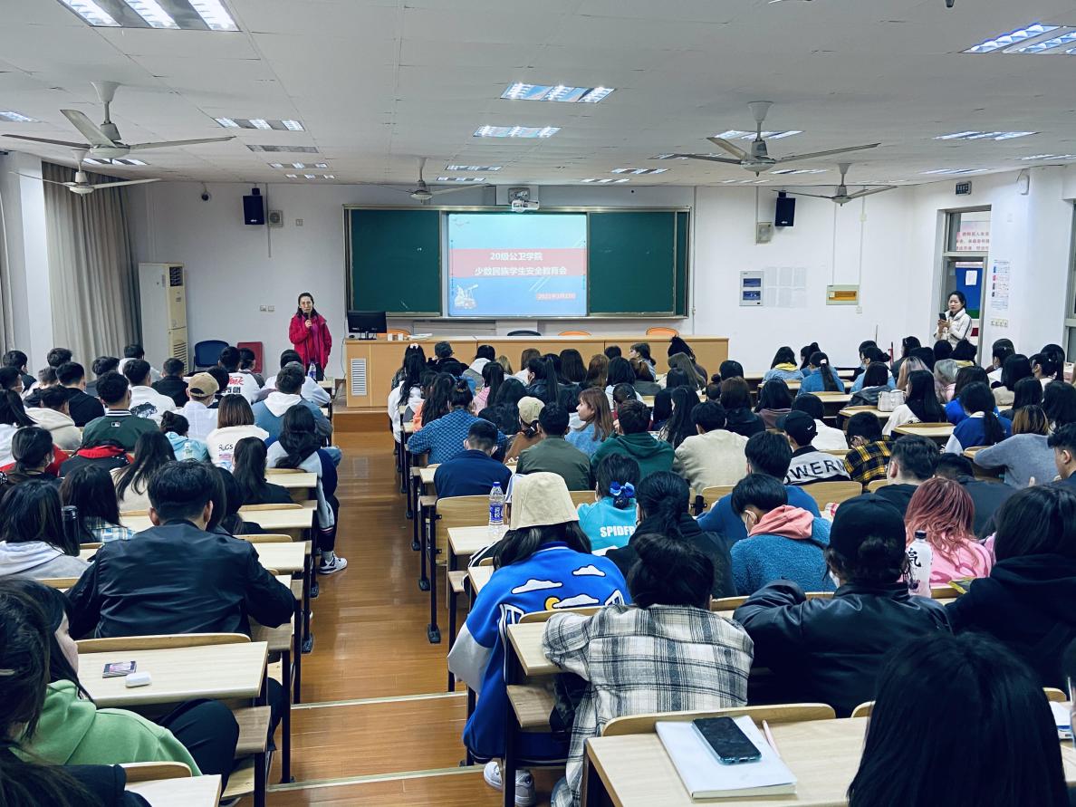 2021年3月23日下午,公共卫生与护理学院邀请学校内派教师巴了黑娅、迪拉娜为学院19级、20级少数民族学生开展了思想安全教育座谈会。学院党总支书记王文华、各班级辅导员以及少数民族同学参加了座谈会。